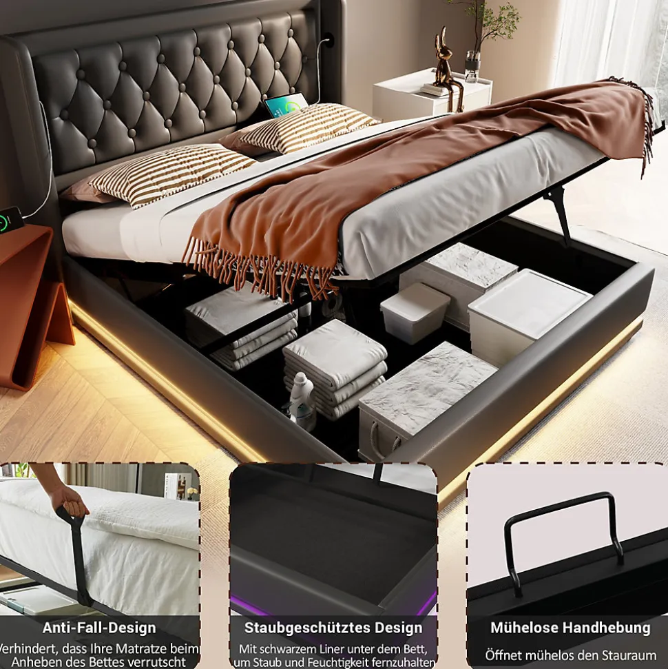 - 【Rangement Sous le Lit Innovant】 Le lit est conçu avec un mécanisme de levage hydraulique de haute qualité, offrant un espace de stockage spacieux sous le lit. Vous pouvez y ranger vos affaires tout en protégeant vos objets de la poussière grâce à la base recouverte de tissu.