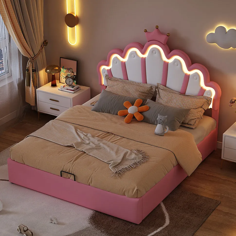 - 【Rangement Hydraulique Pratique】 Le cadre du lit se soulève facilement grâce au mécanisme hydraulique, offrant un espace de rangement généreux pour jouets, vêtements et accessoires, contribuant à garder la chambre organisée et dégagée.