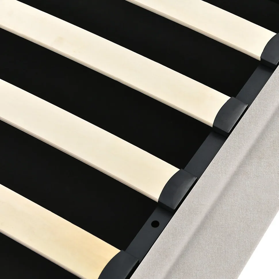 ▶ ▶ Détails ▶────────────────● Dimensions : 206 x 165 x 107 cm (L x l x H)● Surface de couchage : 160 x 200 cm (Sans matelas)● Matériaux : Bois massif + PU + Métal● Couleur : Beige● Capacité de poids : 660 lbs (299,37 kg)● Poids net / brut : 43 kg / 45,88 kg● Espace de rangement interne : 193 x 133 cm● Pièces incluses : Cadre de lit, Sommier, Lampe de lecture avec fonction de charge USB● Nombre de colis : 2► Remarques ►※ Ce produit est expédié en 2 colis, qui peuvent arriver à des jours différents. Veuillez patienter jusqu’à la réception des deux colis.※ En raison de mesures manuelles, un écart de 2-3 cm peut se produire.※ En raison de l’éclairage, des différences de couleur peuvent exister entre l’image du produit et le produit réel. Veuillez vous référer au produit reçu.※ Si vous avez des questions lors de l’installation, veuillez nous contacter dès que possible.