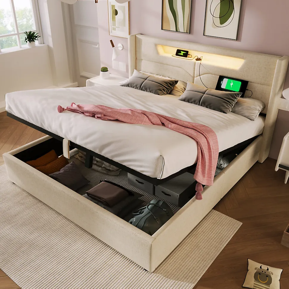 - 【Rangement Flexible et Spacieux】 Le lit dispose d’un espace de rangement pratique sous le sommier. Grâce au système de ressorts à gaz, vous pouvez soulever facilement le sommier pour stocker des objets encombrants et garder votre chambre bien rangée.