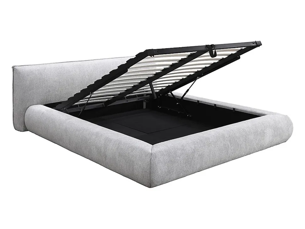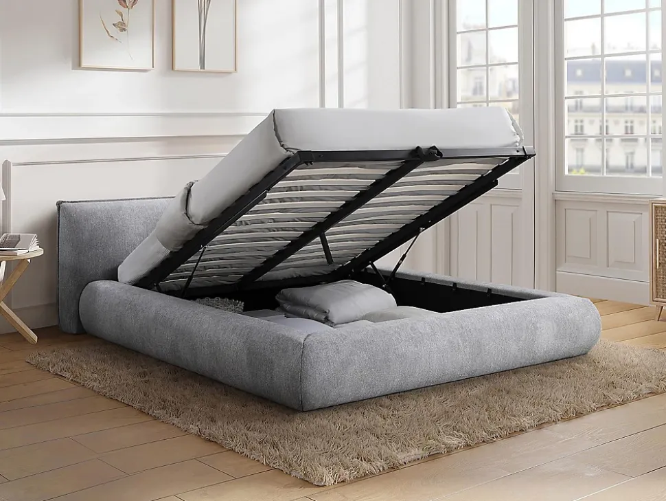 - Lit coffre 160 x 200 cm – Structure : MDF et contreplaqué – Revêtement : Tissu – Coloris : Gris clair – Dimensions : L216 x P244,5 x H81 cm – Style : Contemporain + Matelas – Le lit moderne qui réinvente votre rangement avec MIRSIO !