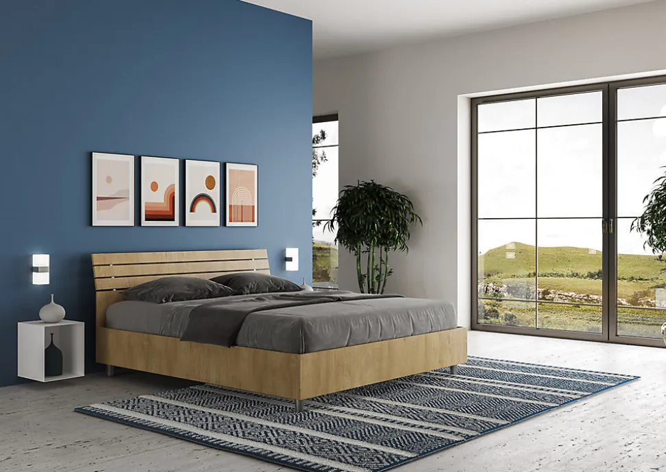 Lit double Ankel 160×190 avec tête de lit et lit en panneaux de mélamine, particulièrement polyvalent et facilement combinable avec n’importe quel style d’ameublement.Le lit double Ankel 160×190 se caractérise par un style minimal et essentiel grâce aux surfaces simples et linéaires.La combinaison du style et des matériaux utilisés pour la structure confère à la pièce une atmosphère chaleureuse et accueillante, typique du bois.Lit fourni avec sommier à rangement, prévu pour un matelas 160×190 cm – Matelas non inclusProduit ItyhomeFabriqué en ItalieDimensions lit : L.167 P.204 H.90 cmHauteur des pieds : 12 cmHauteur du lit : 26 cmHauteur du filet depuis le sol : 38 cmDimensions intérieures du conteneur : L.163 P.194 H