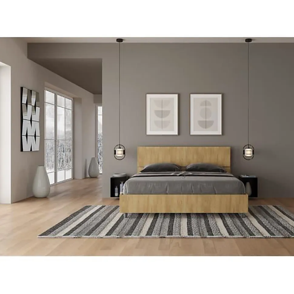 Lit double Demas 160×190 avec tête de lit et lit en panneaux de mélamine, particulièrement polyvalent et facilement combinable avec n’importe quel style d’ameublement.Le lit double Demas 160×190 se caractérise par un style minimal et essentiel grâce aux surfaces simples et linéaires.La combinaison du style et des matériaux utilisés pour la structure confère à la pièce une atmosphère chaleureuse et accueillante, typique du bois.Lit fourni avec sommier à rangement, prévu pour un matelas 160×190 cm – Matelas non inclusProduit ItyhomeFabriqué en ItalieDimensions lit : L.167 P.199 H.102 cmHauteur des pieds : 12 cmHauteur du lit : 26 cmHauteur du filet depuis le sol : 38 cmDimensions intérieures du conteneur : L.163 P.194 H.21 cm