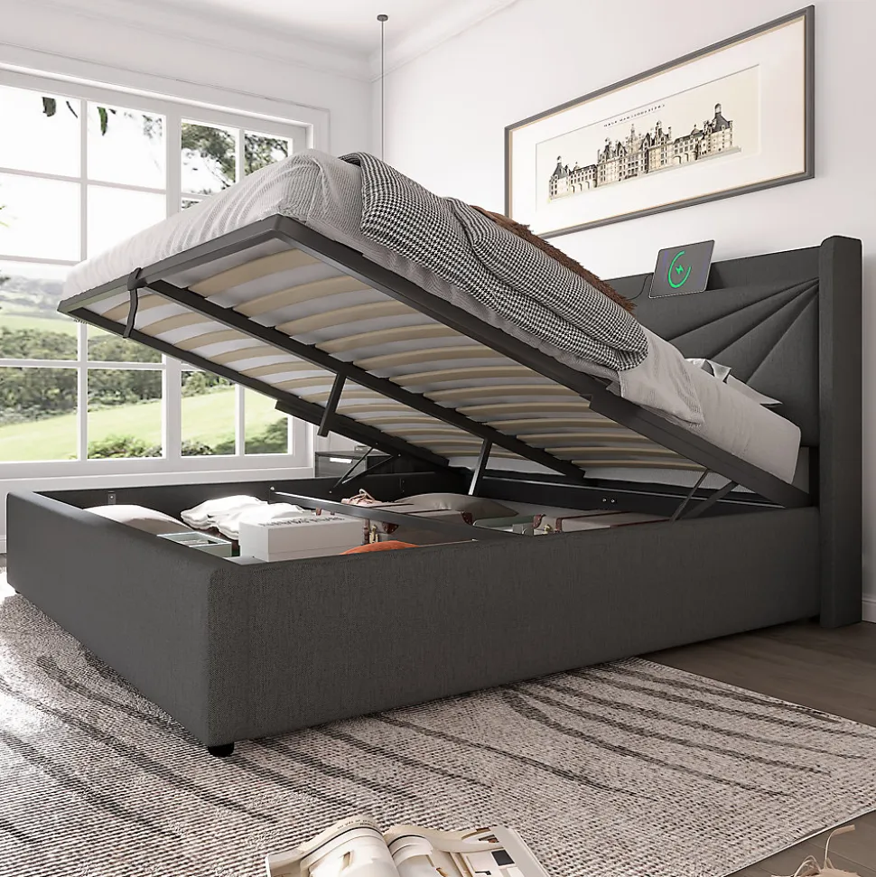 - 【Design de rangement pratique】 Le coffre de rangement spacieux situé sous le lit permet de garder vos couvertures, oreillers et draps bien organisés. Le tissu non-tissé sous le lit protège vos affaires de la poussière tout en optimisant l’espace.