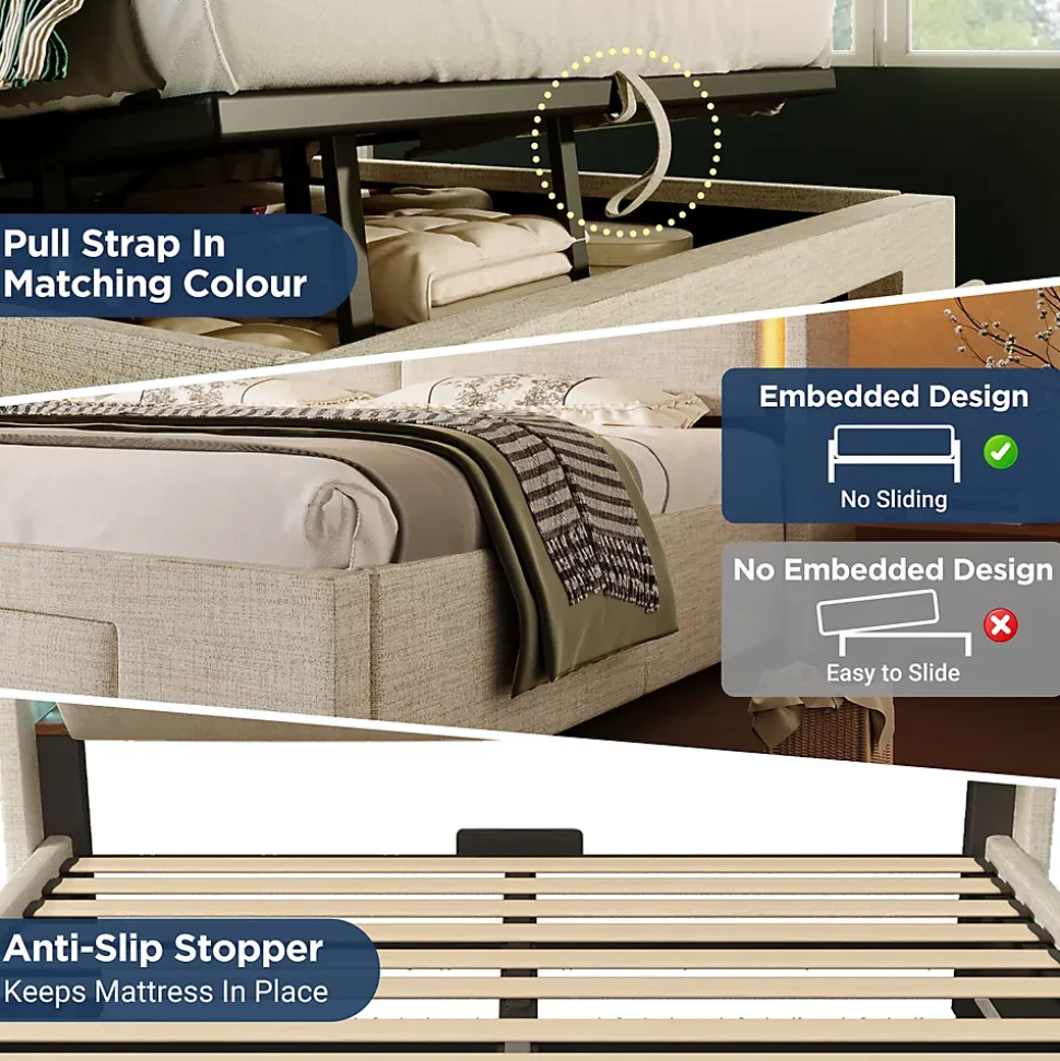 ▶ ▶ Détails ▶────────────────✦ Type de produit : Lit coffre✦ Couleur : Beige✦ Matériau : Lin✦ Dimensions du lit : 160 × 200 cm✦ Dimensions du produit : 219 × 171 × 111 cm✦ Poids net : 67,5 kg✦ Nombre de colis : 3► Remarques ►※ Le produit est livré en 3 colis.※ En raison de mesures manuelles, un écart de 2–3 cm peut se produire.※ Les images du produit sont prises avec le produit réel, mais des variations de couleur peuvent se produire en fonction de l’éclairage.