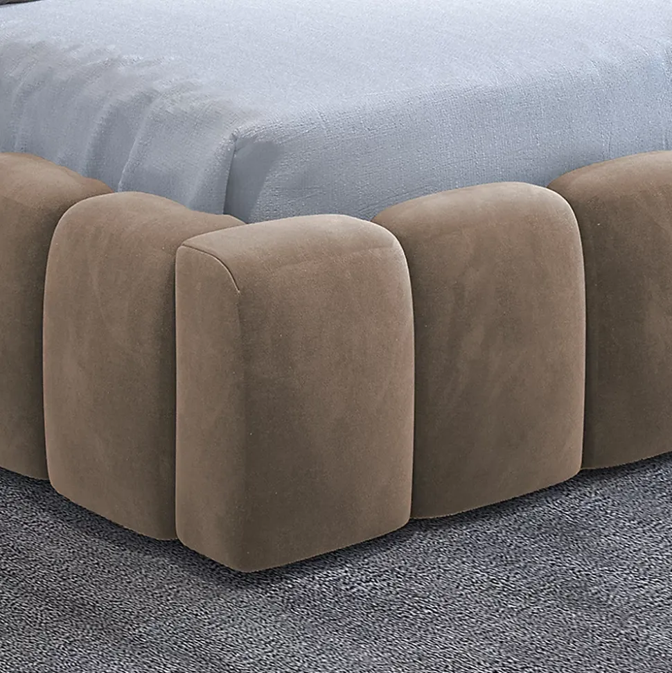 - Matériaux : Tissu velours hydrophobe 100% polyester – Rembourrage en mousse polyester T21 et T25 – Structure en bois de pin – Cadre du sommier en métal – Pied en plastique noir