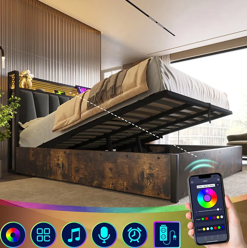 - 【Éclairage LED Ambiant Modifiable】 L’éclairage LED intégré au lit peut changer de couleur et propose un mode musique pour enrichir votre expérience de sommeil. Contrôlez facilement l’ambiance lumineuse via l’application mobile, adaptée à vos envies.