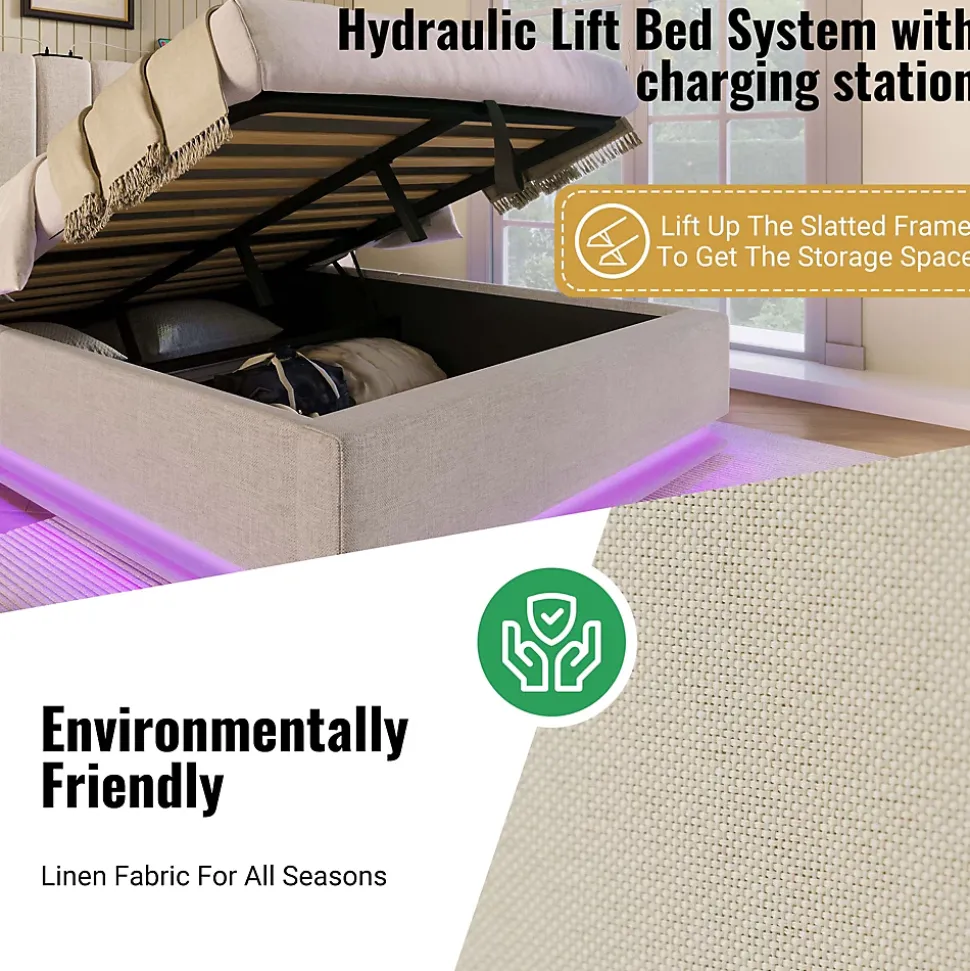 - 【Rangement hydraulique facile d’accès】 Le lit est conçu avec un mécanisme hydraulique fluide et sécurisé qui permet d’accéder facilement au compartiment de rangement. Libérez de l’espace sans effort, tout en bénéficiant de la solidité d’un lit qui peut supporter un usage quotidien sans compromis sur la stabilité.