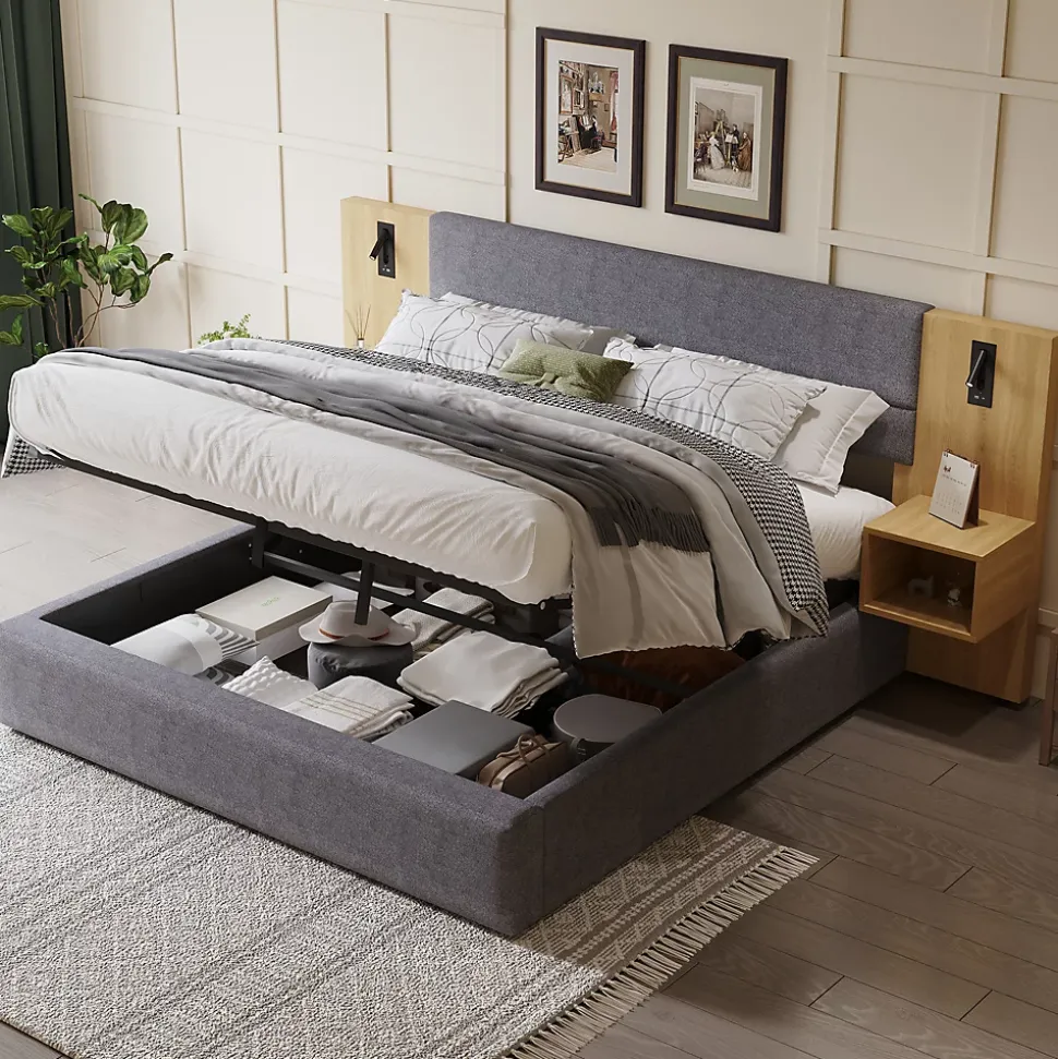 - 【Système Hydraulique Intégré】 Le mécanisme hydraulique permet de soulever le sommier facilement, dévoilant un espace de rangement généreux idéal pour la literie, les vêtements saisonniers et autres objets encombrants.