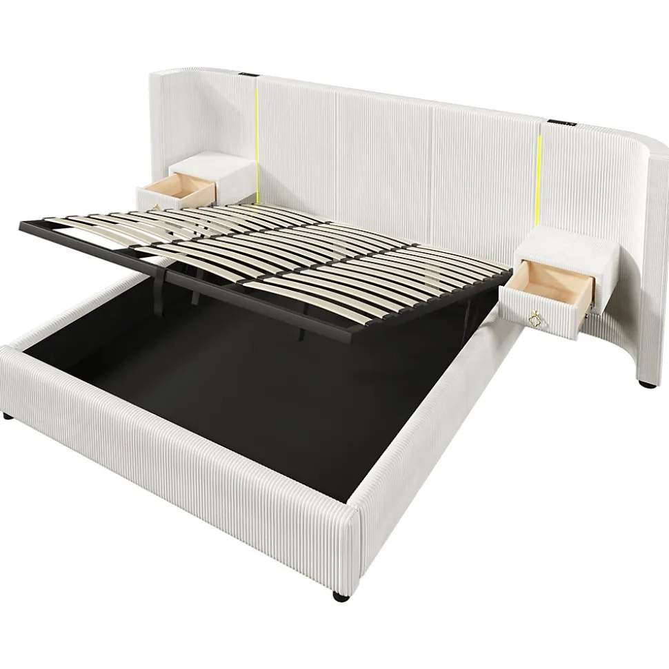 - 【Espace de rangement innovant】 Le coffre de rangement hydraulique s’ouvre facilement d’un simple clic et se ferme en douceur, offrant un espace généreux pour les couvertures et les effets personnels sans bruit.
