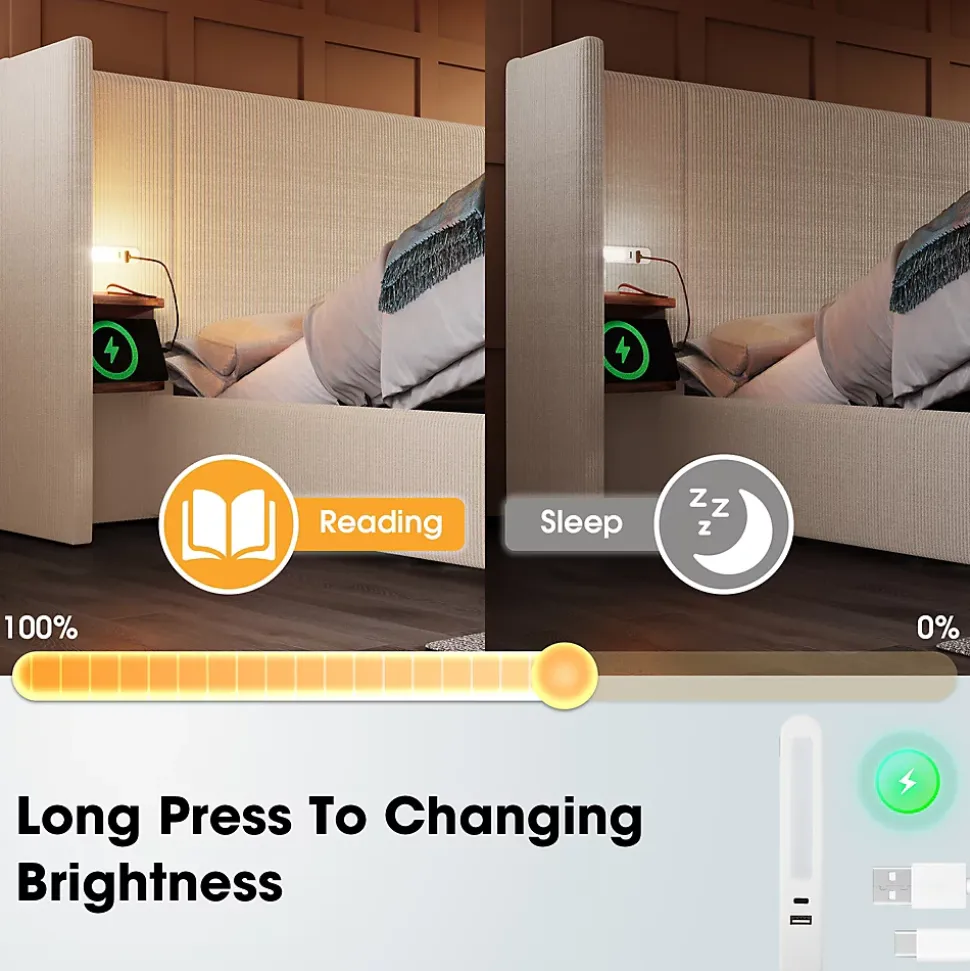 - 【Lampe De Lecture Tactile】 Éclairage avec réglage tactile et ports USB/Type-C intégrés permettant de charger facilement vos appareils tout en offrant une lumière douce pour la lecture ou la détente nocturne.