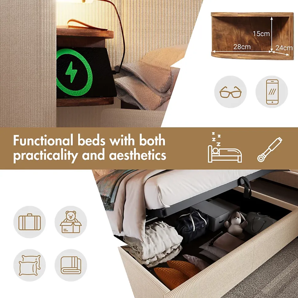 - 【Coffre De Rangement Hydraulique】 Système hydraulique fluide avec sangles pratiques pour lever et abaisser le sommier, offrant un accès aisé à un vaste rangement et évitant tout glissement du matelas.