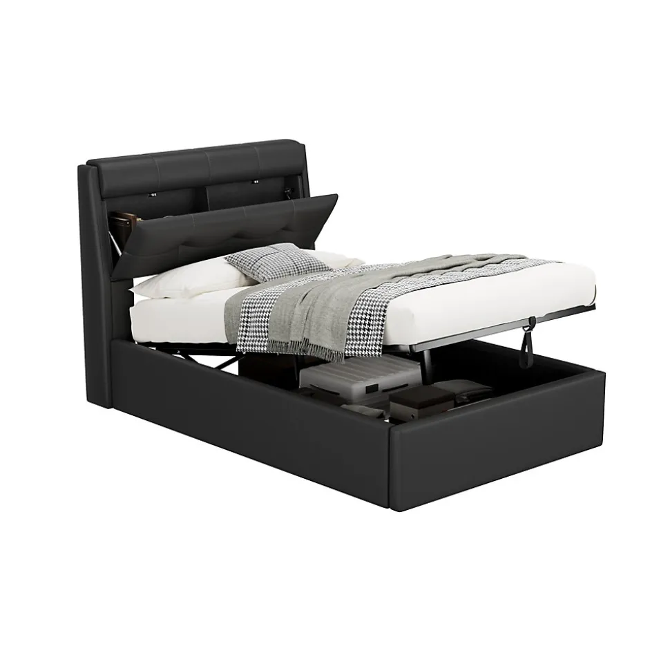 - 【Design Hydraulique Innovant】 Le système hydraulique facilite l’accès au coffre sous le lit, vous permettant de soulever la surface du matelas en toute simplicité pour un rangement pratique et sans effort.