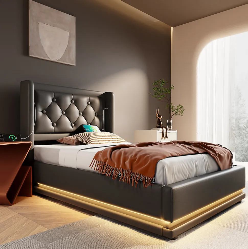 - 【Rangement Sous le Lit Innovant】 Le lit est conçu avec un mécanisme de levage hydraulique de haute qualité, offrant un espace de stockage spacieux sous le lit. Vous pouvez y ranger vos affaires tout en protégeant vos objets de la poussière grâce à la base recouverte de tissu.