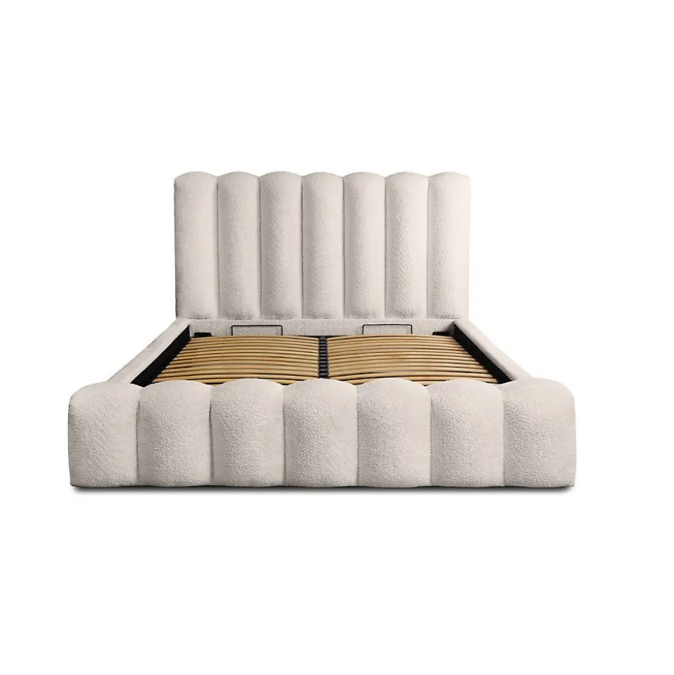 Lit coffre BADJA 140×200 cm en tissu bouclé Ivoire rosé – Élégance et rangement pratiqueApportez une touche de douceur et de lumière à votre chambre avec le lit coffre BADJA recouvert d’un tissu bouclé Ivoire rosé. Son design contemporain s’adapte parfaitement à un intérieur moderne et chic.Ce lit coffre est équipé d’un sommier relevable à lattes sur cadre métallique, assisté par des vérins à gaz pour un accès facile et sécurisé à un coffre spacieux, idéal pour maximiser votre rangement.La structure allie bois, métal, mousse et panneaux de particules pour garantir robustesse et durabilité.Pourquoi choisir le lit coffre BADJA 140×200 ?Avec des dimensions hors-tout de 240 x 155 x 120 cm, ce lit offre un couchage confortable et un espace de rangement pratique. Le tissu bouclé Ivoire rosé apporte une touche raffinée à votre chambre.Caractéristiques techniquesType : Lit coffre tapissé avec sommier relevableCollection : BADJADimensions couchage : 140×200 cmDimensions hors-tout : L240 x l155 x H120 cmStructure : Bois, métal, mousse, panneaux de particulesRevêtement : Tissu bouclé – Coloris Ivoire roséSommier : Lattes sur cadre métal avec vérins à gazCoffre : Rangement intégré accessible via sommier relevablePieds : Plastique discretNombre de colis : 4 (133 kg)Avantages du lit coffre BADJADesign moderne avec finitions soignéesGrand coffre de rangement spacieux et pratiqueTissu bouclé pour un confort et une esthétique raffinésMontage simple et rapide (environ 1h30)Découvrez la collection BADJA et explorez notre catégorie Lit pour compléter votre chambre avec style.