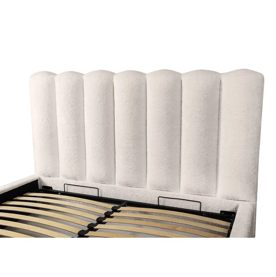 Lit coffre BADJA 180×200 cm en tissu bouclé Ivoire rosé – Élégance et rangement pratiqueOffrez à votre chambre un style raffiné et une ambiance lumineuse avec le lit coffre BADJA recouvert d’un tissu bouclé Ivoire rosé. Son design contemporain s’adapte parfaitement à un intérieur moderne et chic.Ce lit coffre est équipé d’un sommier relevable à lattes sur cadre métallique, assisté par des vérins à gaz pour un accès facile et sécurisé à un coffre spacieux, idéal pour maximiser votre rangement.La structure allie bois, métal, mousse et panneaux de particules pour garantir robustesse et durabilité.Pourquoi choisir le lit coffre BADJA 180×200 ?Avec des dimensions hors-tout de 240 x 195 x 120 cm, ce lit offre un couchage confortable et un espace de rangement pratique. Le tissu bouclé Ivoire rosé apporte une touche raffinée à votre chambre.Caractéristiques techniquesType : Lit coffre tapissé avec sommier relevableCollection : BADJADimensions couchage : 180×200 cmDimensions hors-tout : L240 x l195 x H120 cmStructure : Bois, métal, mousse, panneaux de particulesRevêtement : Tissu bouclé – Coloris Ivoire roséSommier : Lattes sur cadre métal avec vérins à gazCoffre : Rangement intégré accessible via sommier relevablePieds : Plastique discretNombre de colis : 4 (123 kg)Avantages du lit coffre BADJADesign moderne avec finitions soignéesGrand coffre de rangement spacieux et pratiqueTissu bouclé pour un confort et une esthétique raffinésMontage simple et rapide (environ 1h30)Découvrez la collection BADJA et explorez notre catégorie Lit pour compléter votre chambre avec style.