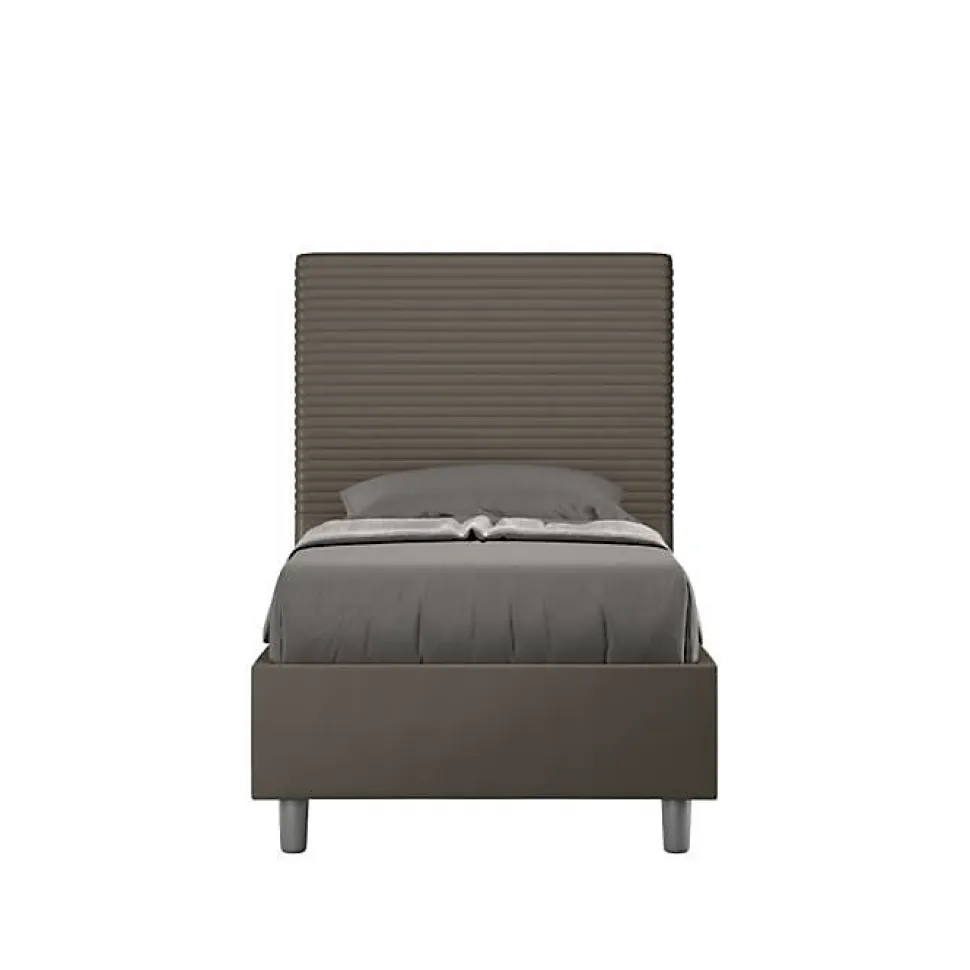 Lit simple 80×190 Focus avec tête de lit et lit rembourrés, revêtement en simili cuir, particulièrement polyvalent et facilement combinable avec n’importe quel style d’ameublement.Le lit simple Focus 80×190 se caractérise par un style moderne et élégant, mis en valeur par la tête de lit matelassée recouverte de simili cuir.La présence du matériau en simili cuir, en plus de donner à la pièce une atmosphère accueillante et invitante, offre la commodité d’un nettoyage rapide et facile, grâce à l’utilisation d’un simple chiffon en microfibre.Lit fourni avec sommier rangement, prévu pour un matelas 80×190 cm – Matelas non inclusCouvre-lit non amovible.Produit ItyhomeFabriqué en ItalieDimensions lit : L.95 P.210 H.122 cmHauteur des pieds : 12 cmHauteur du lit : 27 cmHauteur du filet depuis le sol : 39 cmDimensions intérieures du conteneur : L.83 P.194 H.21 cm