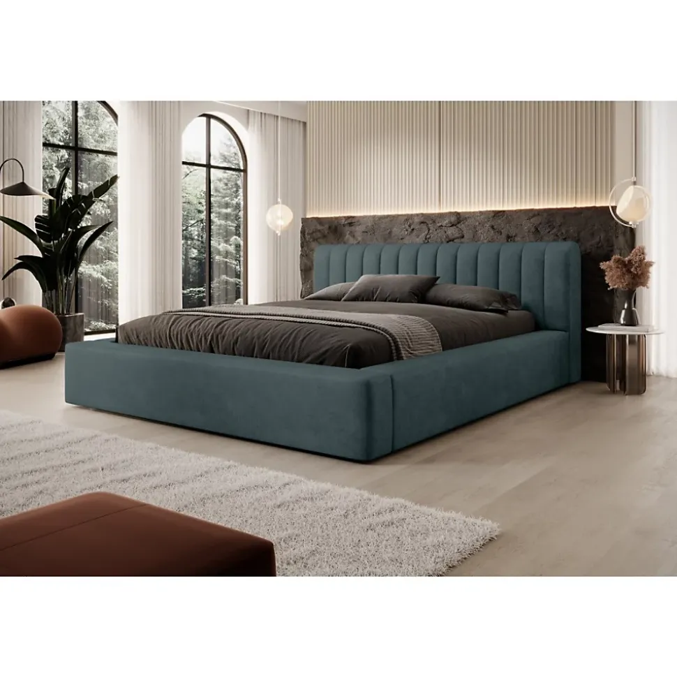 Lit coffre CERVIN 140×200 cm en velours doux Nuit émeraude – Élégance et rangement pratiqueApportez une touche de fraîcheur et de raffinement à votre chambre avec le lit coffre CERVIN revêtu d’un tissu velours doux Nuit émeraude. Sa teinte profonde et son toucher soyeux créent une atmosphère apaisante et luxueuse.Ce lit coffre est équipé d’un sommier relevable à lattes en bois sur cadre métallique, avec vérins à gaz pour un accès facile et sécurisé à un coffre spacieux, idéal pour optimiser votre espace de rangement.Sa structure solide allie bois, métal, mousse et panneaux de particules, garantissant robustesse et durabilité.Pourquoi choisir le lit coffre CERVIN 140×200 – Tissu velours Nuit émeraude ?Avec des dimensions hors-tout de 238 x 180 x 86 cm, ce lit allie design contemporain et fonctionnalité. Le coloris Nuit émeraude apporte une note sophistiquée et naturelle à votre intérieur.Caractéristiques techniques Type : Lit coffre tapissé avec sommier relevable Collection : CERVIN Dimensions couchage : 140×200 cm Dimensions hors-tout : L238 x l180 x H86 cm Structure : Bois, métal, mousse, panneaux de particules Revêtement : Tissu velours doux – Coloris Nuit émeraude Sommier : Lattes bois sur cadre métal avec vérins à gaz Coffre : Rangement intégré accessible via sommier relevable Pieds : Plastique discret Nombre de colis : 4 (115 kg)Avantages du lit coffre CERVIN Design élégant avec finitions soignées Grand coffre de rangement pratique Tissu velours doux pour un confort haut de gamme Montage facile et rapide (environ 1h30)Découvrez la collection CERVIN et explorez notre catégorie Lit pour compléter votre chambre avec style.
