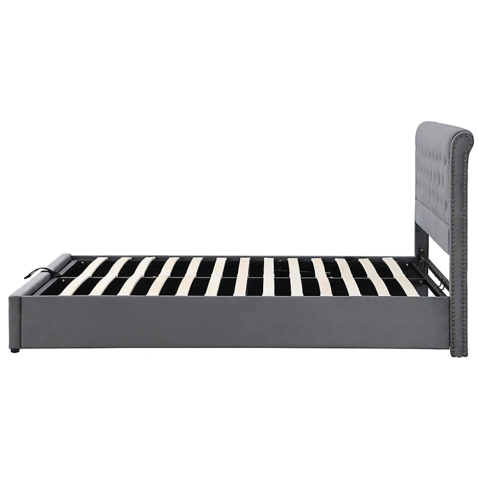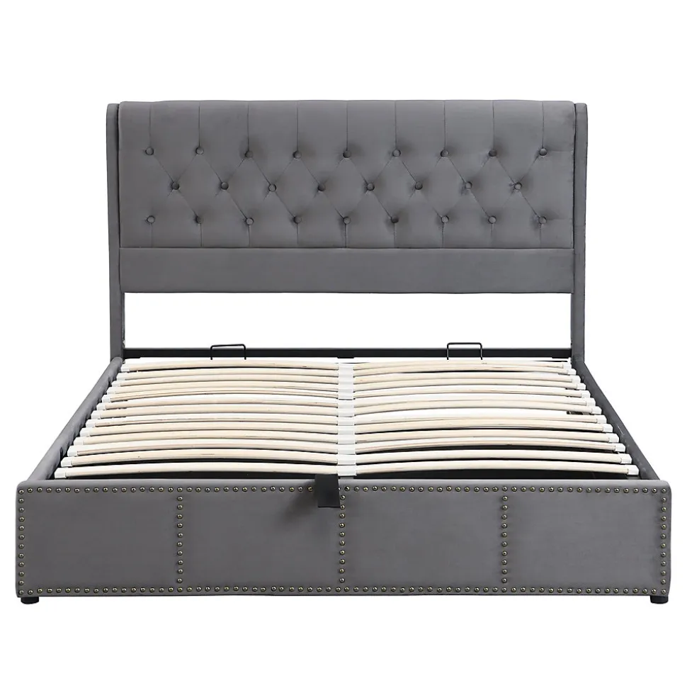 ▶ ▶ Détails ▶────────────────● Dimensions du produit : 207 × 181 × 102,5 cm (L x l x H)● Type de sommier : Sommier inclus● Type de matelas : Sans matelas● Détails de stockage : Coffres de rangement sous le lit● Poids net : 52 kg● Charge maximale : 300 kg● Matériau : Velours● Couleur : Gris● Nombre de colis : 2► Remarques ►※ En raison des mesures manuelles, un écart de 2 à 3 cm peut se produire.※ Des différences de couleur peuvent apparaître entre l’image du produit et le produit réel en raison de l’éclairage et d’autres facteurs. Merci de vous référer au produit réel que vous recevrez.※ Ce produit est expédié en 2 colis, qui peuvent arriver séparément. Merci de votre patience.※ Si vous avez des questions pendant l’installation, veuillez nous contacter dès que possible.