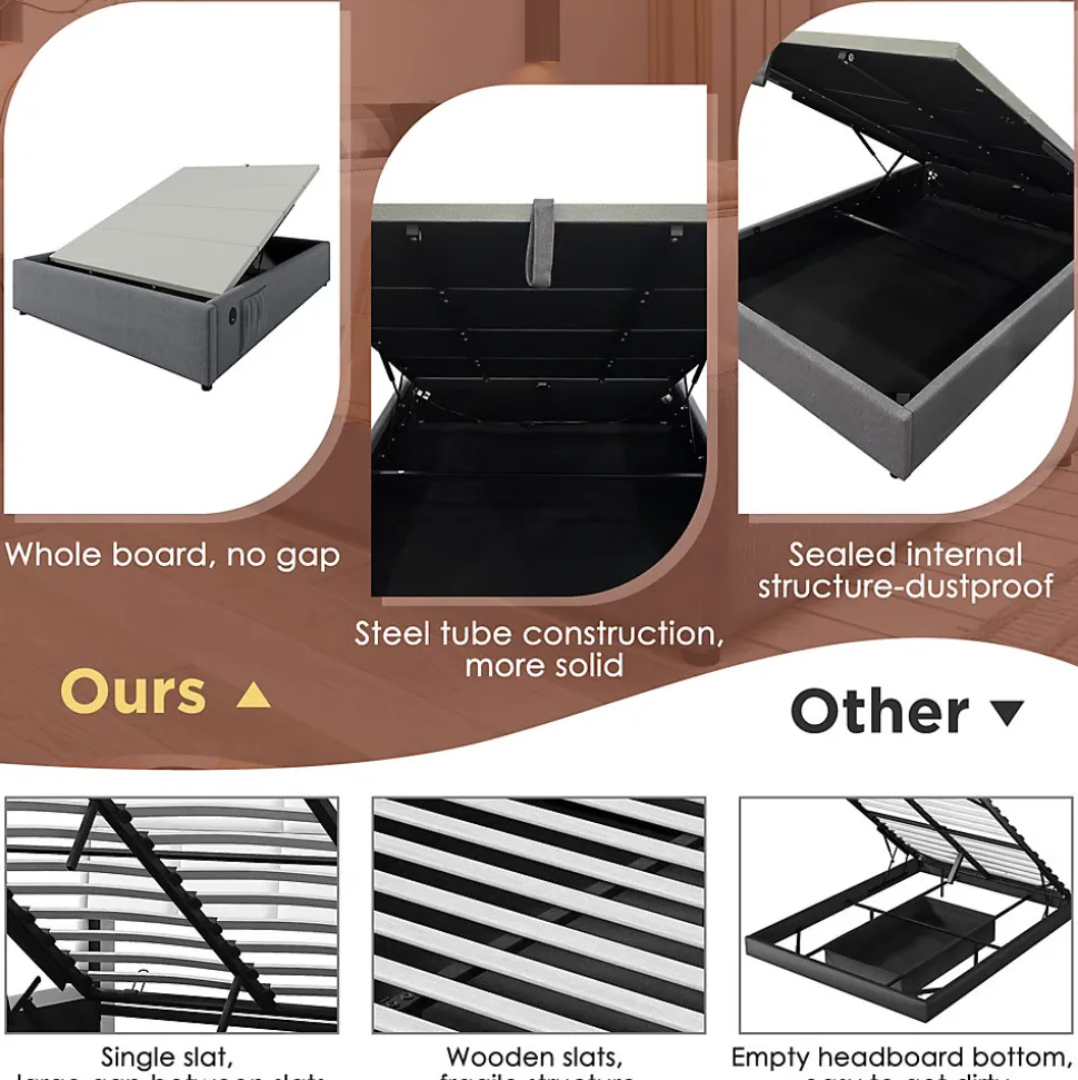 - 【Rangement Pratique avec Système Hydraulique】 Grâce au système hydraulique silencieux, soulevez facilement le sommier pour accéder à un vaste espace de rangement. Idéal pour stocker des couvertures, des oreillers ou des objets saisonniers sans encombrer votre chambre.