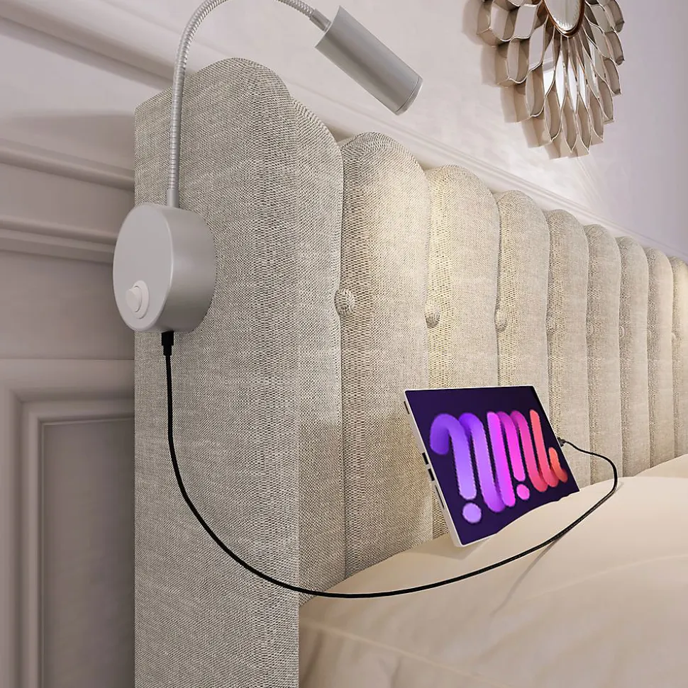Lit double 160×200 cm en lin avec rangements et éclairageCaractéristiques principales :Dimensions : 160×200 cm (206x165x103 cm assemblé)Matériau : Lin naturel + structure métallique (charge max 300 kg)Couleur : NaturelPoids : 45,29 kg (2 colis)Fonctionnalités : ✔ Tête de lit avec rangement intégré ✔ Lampe de lecture réglable + 2 ports USB ✔ Système de rangement sous le lit avec accès pneumatique ✔ Sommier lattes inclusAvantages :Ambiance chaleureuse et design contemporainStructure métallique robuste et durableÉclairage et recharge intégrés pour plus de confortLivré en 2 colis (assemblage nécessaire)Informations pratiques :Hauteur tête de lit : 25 cmConvient pour matelas 160×200 cm (non inclus)Dimensions colis : 1198x31x14 cm + 1165x50x15,5 cmLivraison possiblement décalée entre colisIdéal pour chambres d’ado ou adultes recherchant fonctionnalité et confort.