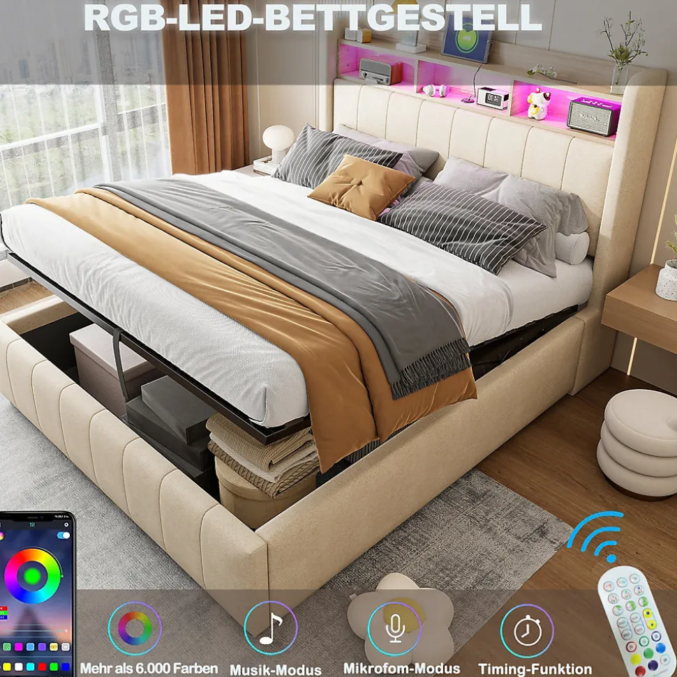 - 【Éclairage led avec choix de couleurs】 Le tête de lit est équipé de LED ajustables, permettant de personnaliser l’ambiance de votre chambre. Choisissez la couleur de lumière qui correspond à votre humeur, que ce soit pour un moment de détente ou une atmosphère vivante.