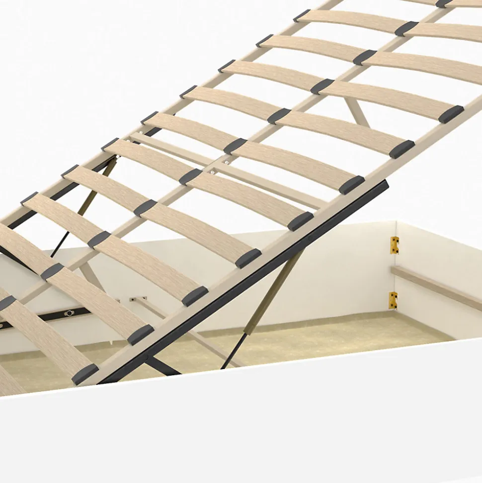 Apportez une touche moderne à votre chambre à coucher avec le lit coffre double avec sommier SANDSIDE 140 x 190 CM ! Avec son coloris blanc passe-partout, le design épuré de ce lit double s’intègrera parfaitement à tous types de décoration intérieure ! En plus d’avoir des finitions soignées, la structure du lit, pratique et fonctionnelle, abrite sous son sommier un grand coffre de rangement. Vous pourrez facilement y accéder grâce aux vérins de levage. Celui-ci vous permet d’y entreposer vos valises, votre linge de maison ou tout autre objet afin de conserver un espace nuit ordonné.Stable et robuste, ce coffre de lit est composé d’un sommier 24 lattes en bois tout confort et d’une barre transversale sous le sommier.Craquez pour le lit coffre double SANDSIDE et apportez style et praticité dans votre chambre à coucher ! Dimensions du lit coffre double SANDSIDE 140 x 190 CM blancDimensions globales : Longueur 195.5 cm x largeur 144.5 cm x Hauteur 30 cmHauteur du cadre : 30 cmSommier de 24 lattes inclusMatériaux : Panneaux de particules bois (PB) / MétalColoris : blancÀ monter soi-mêmeRetrouvez l’ensemble de notre gamme de lits sur notre boutique en ligne !