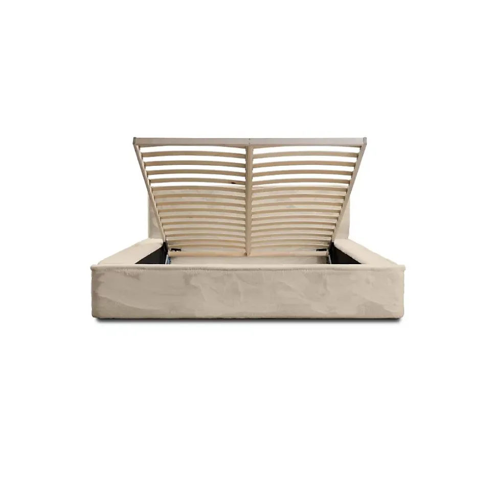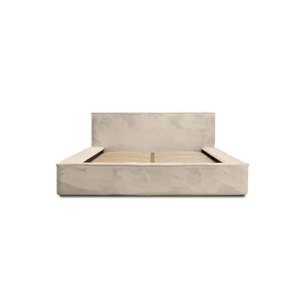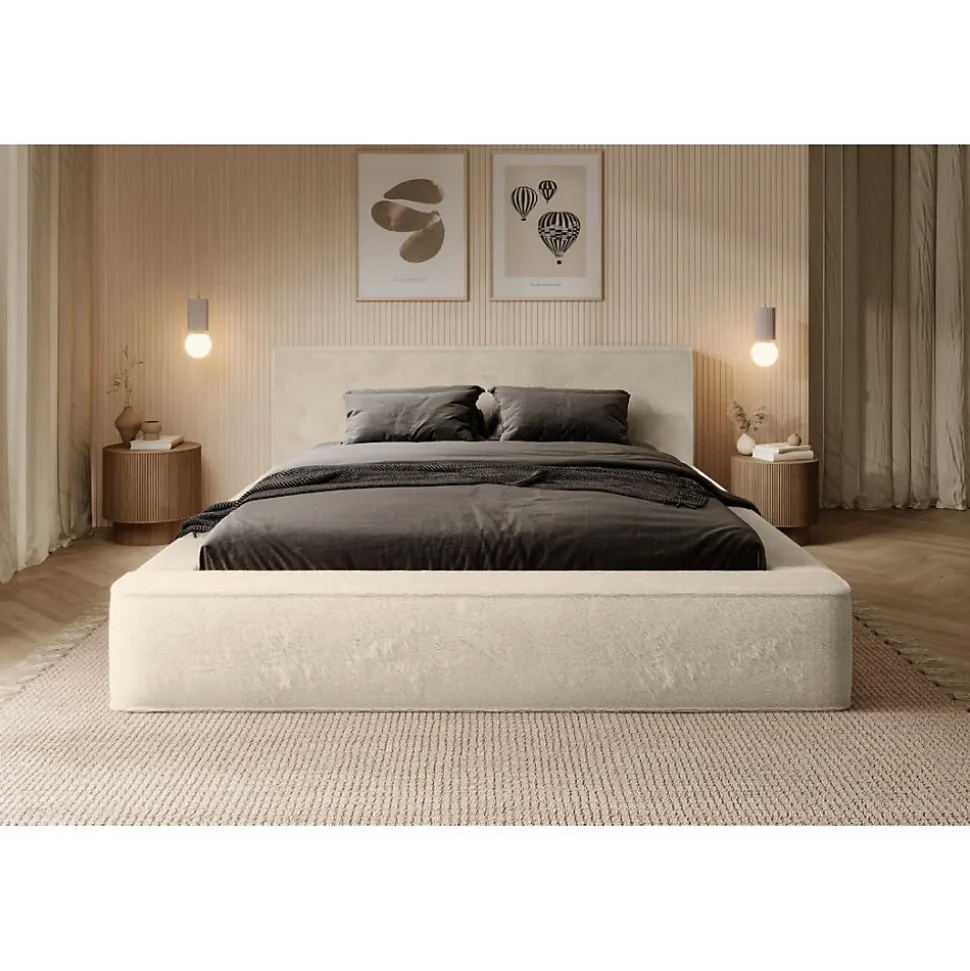 Lit coffre haut de gamme 180×200 en tissu velours beige Velours de dune – Confort et rangement optimiséApportez une ambiance élégante et chaleureuse à votre chambre avec le lit coffre ORLANE 180×200 cm en tissu velours beige Velours de dune. Sa texture douce et noble offre un confort exceptionnel et une atmosphère raffinée.Ce lit comprend un sommier relevable avec lattes en bois sur cadre métal, équipé de vérins à gaz pour un accès aisé à un coffre de rangement spacieux sous toute la surface du couchage. Sa structure solide mêle bois, métal, mousse et panneaux de particules pour un confort et une durabilité optimaux.Pourquoi choisir notre lit coffre ORLANE 180×200 – Tissu velours beige Velours de dune avec sommier relevableLe coloris beige Velours de dune illumine et adoucit votre espace nuit. Avec ses dimensions hors-tout de 238 x 220 x 86 cm, ce lit allie confort généreux, design contemporain et fonctionnalité pratique pour une chambre organisée et élégante.Caractéristiques techniques du lit ORLANE – Lit coffre 180×200 cm velours beige Velours de dune Type de produit : Lit coffre tapissé avec sommier relevable Collection : ORLANE Dimensions couchage : 180×200 cm Dimensions hors-tout : L238 x l220 x H86 cm Structure : Bois, métal, mousse, panneaux de particules Revêtement : Tissu velours – Coloris beige Velours de dune Tête de lit : Pleine, droite – Hauteur 86 cm Sommier : Inclus – Lattes en bois sur cadre métal avec vérins à gaz Coffre de rangement : Oui – Intégré sur toute la surface du lit Hauteur du cadre : 31 cm Pieds : Plastique discret – Non visibles Nombre de colis : 4 (Poids total : 132 kg)Les avantages du lit ORLANE – Lit coffre 180×200 beige Velours de dune en tissu velours Tissu velours beige Velours de dune : Confort velouté et ambiance chaleureuse Coffre intégré : Rangement spacieux et accessible Sommier relevable à vérins : Mécanisme fiable et ergonomique Design contemporain : Adapté à une chambre moderne et fonctionnelleDécouvrez la