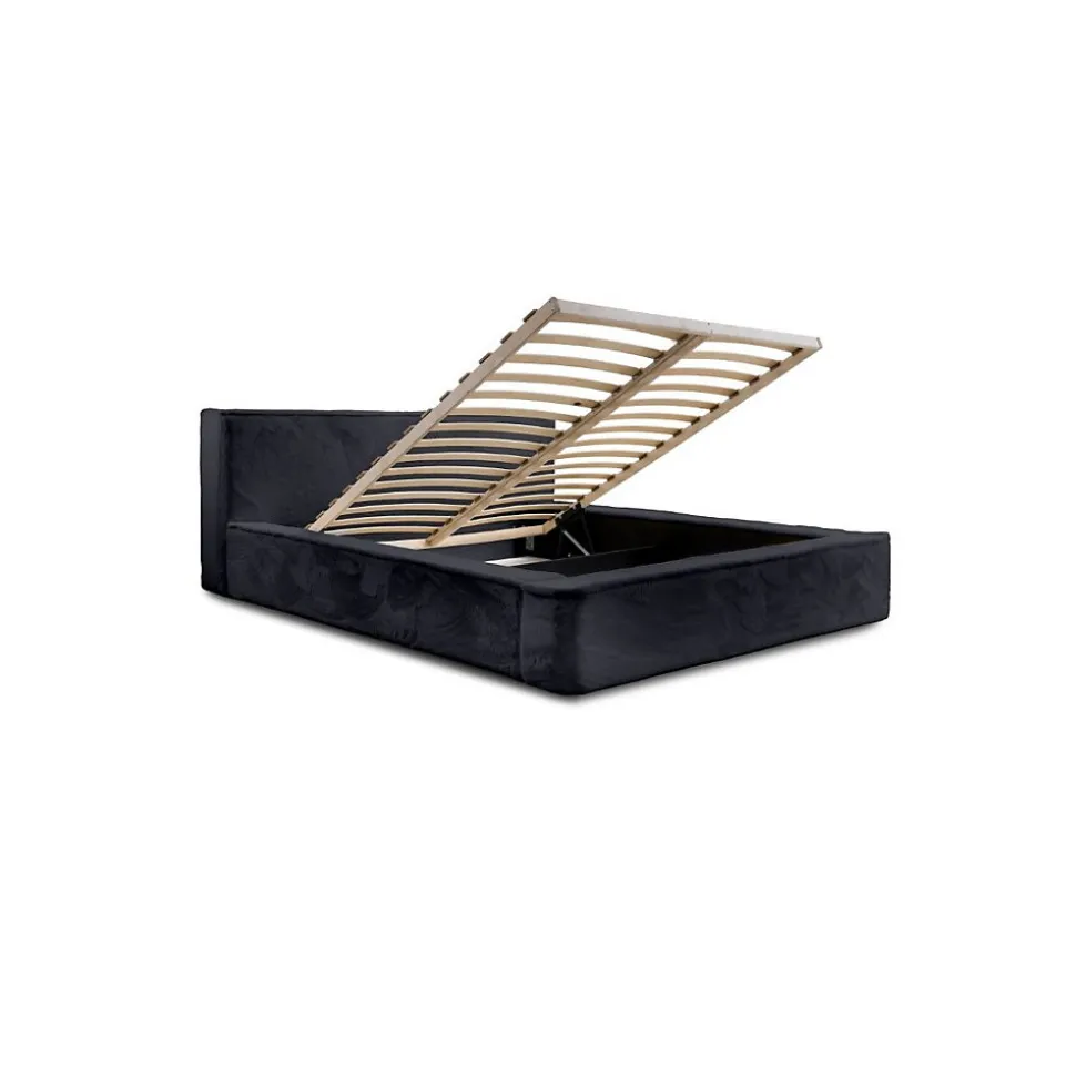 Lit coffre haut de gamme 160×200 en tissu polaire noir Ardoise – Confort et rangement optimiséApportez une touche élégante et moderne à votre chambre avec le lit coffre ORLANE 160×200 cm en tissu polaire noir Ardoise. Ce tissu doux et profond confère à votre chambre une atmosphère chaleureuse et sophistiquée.Ce lit est équipé d’un sommier relevable à lattes en bois sur cadre métallique, assisté par des vérins à gaz pour une ouverture facile et sécurisée vers un coffre de rangement spacieux couvrant toute la surface du couchage. Sa structure robuste associe bois, métal, mousse et panneaux de particules pour garantir durabilité et confort durable.Pourquoi choisir notre lit coffre ORLANE 160×200 – Tissu polaire noir Ardoise avec sommier relevableLe coloris noir Ardoise apporte une touche contemporaine et chic à votre décoration. Avec ses dimensions hors-tout de 238 x 200 x 86 cm, ce lit allie design épuré, confort optimal et fonctionnalité pratique, parfait pour un espace nuit organisé et harmonieux.Caractéristiques techniques du lit ORLANE – Lit coffre 160×200 cm polaire noir Ardoise Type de produit : Lit coffre tapissé avec sommier relevable Collection : ORLANE Dimensions couchage : 160×200 cm Dimensions hors-tout : L238 x l200 x H86 cm Structure : Bois, métal, mousse, panneaux de particules Revêtement : Tissu polaire – Coloris noir Ardoise Tête de lit : Pleine, droite – Hauteur 86 cm Sommier : Inclus – Lattes en bois sur cadre métal avec vérins à gaz Coffre de rangement : Oui – Intégré sur toute la surface du lit Hauteur du cadre : 31 cm Pieds : Plastique discret – Non visibles Nombre de colis : 4 (Poids total : 126 kg)Les avantages du lit ORLANE – Lit coffre 160×200 noir Ardoise en tissu polaire Tissu polaire noir Ardoise : Élégance et douceur pour un confort durable Coffre intégré : Rangement spacieux et pratique Sommier relevable à vérins : Ouverture facile et sécurisée Design contemporain : Parfait pour une chambre moderne et fonctionnelleDécouvr