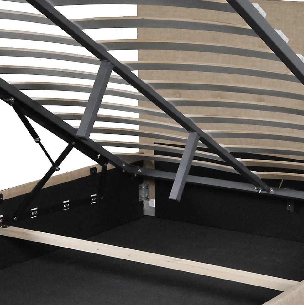 Lit PARMA 140×190 cm Le lit coffre PARMA est le lit idéal pour les personnes en quête de plus de solutions de rangement. Son design sobre et intemporel lui permet de s’adapter à tous les types d’intérieur. L’avantage du lit PARMA est son grand coffre de rangement dissimulé sous le sommier : un rangement supplémentaire spacieux pour stocker toutes vos affaires.Caractéristiques : Cadre: MDF + Mousse + TissuTête de lit capitonnéeFond du coffre en tissuSommier 2×12 lattes en bois.Livré démonté, sans matelas. A monter soi-mêmeDimensions:201x149x99