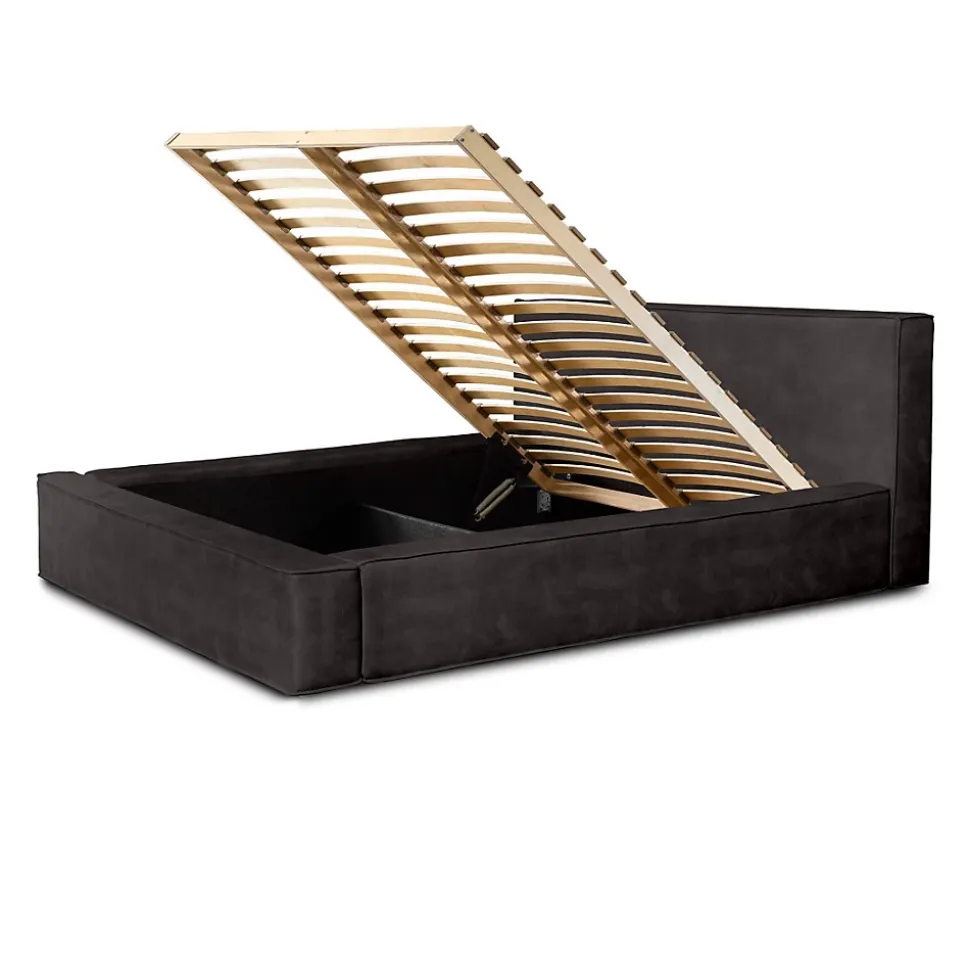 Lit coffre haut de gamme 160×200 en velours gris anthracite – Design moderne avec rangement intégréLe lit coffre VELORA 160×200 cm en tissu velours doux coloris gris anthracite est le choix idéal pour ceux qui souhaitent combiner style contemporain et rangement intelligent. Sa teinte sobre et chic, son grand coffre intégré et sa structure robuste en font un incontournable des chambres modernes.Doté d’une tête de lit droite de 86 cm et d’un sommier relevable monté sur cadre métal, il cache un espace de rangement spacieux accessible facilement grâce à des vérins à gaz. Sa structure de qualité, associant bois, métal, mousse et panneaux de particules, garantit un confort durable.Pourquoi choisir notre lit coffre VELORA 160×200 – Lit avec coffre gris anthraciteLe lit VELORA conjugue design épuré et fonctionnalité haut de gamme. Grâce à ses dimensions généreuses de 240 x 200 cm, il offre un couchage spacieux et un rangement pratique pour le linge de lit. Le velours doux ajoute une dimension sensorielle agréable au quotidien.Caractéristiques techniques du lit VELORA – Lit coffre 160×200 cm gris anthracite Type de produit : Lit coffre tapissé avec sommier relevable Collection : VELORA Dimensions couchage : 160×200 cm Dimensions hors-tout : L240 x l200 x H86 cm Structure : Bois, métal, mousse, panneaux de particules Revêtement : Tissu velours doux – Coloris gris anthracite Tête de lit : Pleine, droite – Hauteur 86 cm Sommier : Inclus – Lattes sur cadre métallique avec vérins à gaz Coffre de rangement : Oui – Intégré sur toute la surface du lit Hauteur du cadre : 36 cm Pieds : Plastique discret – Non visibles Nombre de colis : 4 (Poids total : 126 kg) EAN : 3664573095282Les avantages du lit VELORA – Lit coffre 160×200 gris anthracite Velours doux gris anthracite : Chic, intemporel et agréable au toucher Grand coffre de rangement intégré : Fonctionnalité optimale pour linge et accessoires Sommier relevable à vérins : Accès fluide et pratique Structure solide :