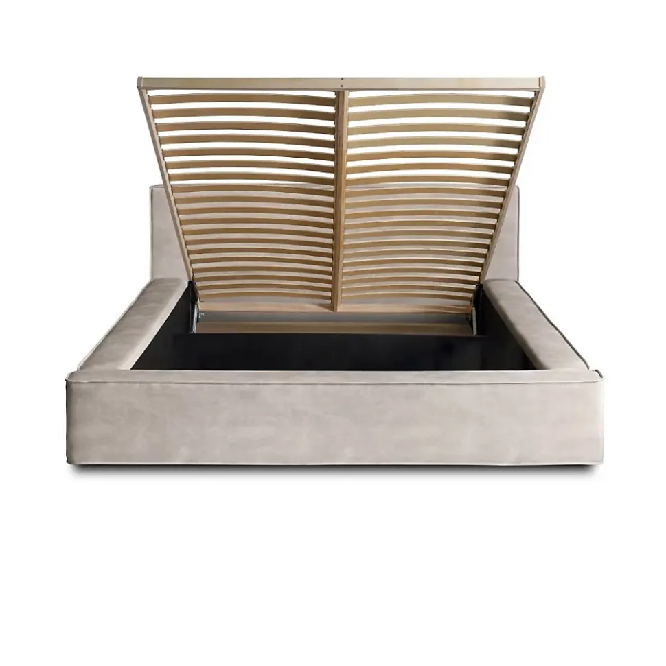 Lit coffre haut de gamme 140×200 en velours sable – Design moderne avec rangement intégréLe lit coffre VELORA 140×200 cm en tissu velours doux coloris sable incarne l’élégance naturelle et la fonctionnalité. Sa teinte claire et chaleureuse s’intègre dans tous les styles d’intérieur, et son coffre de rangement intégré optimise parfaitement l’espace de votre chambre adulte.Sa tête de lit droite de 86 cm lui confère un look moderne et équilibré. Grâce au sommier à lattes sur cadre métallique avec vérins à gaz, l’accès au coffre spacieux est simple et pratique. Sa structure robuste en bois, métal, mousse et panneaux de particules assure une stabilité durable.Pourquoi choisir notre lit coffre VELORA 140×200 – Lit sable avec rangement intégréCe lit allie confort, sobriété et efficacité. Sa finition velours sable ajoute une douceur visuelle agréable, tandis que ses dimensions hors-tout de 240 x 180 cm en font un couchage généreux adapté aux pièces de taille moyenne. Le coffre est idéal pour ranger oreillers, couvertures et linge de lit.Caractéristiques techniques du lit VELORA – Lit coffre 140×200 cm sable Type de produit : Lit coffre tapissé avec sommier relevable Collection : VELORA Dimensions couchage : 140×200 cm Dimensions hors-tout : L240 x l180 x H86 cm Structure : Bois, métal, mousse, panneaux de particules Revêtement : Tissu velours doux – Coloris sable Tête de lit : Pleine, droite – Hauteur 86 cm Sommier : Inclus – Lattes en bois sur cadre métal avec vérins à gaz Coffre de rangement : Oui – Intégré sur toute la surface du lit Hauteur du cadre : 36 cm Pieds : Plastique discret – Non visibles Nombre de colis : 4 (Poids total : 115 kg)Les avantages du lit VELORA – Lit coffre 140×200 sable Coloris sable naturel : Facile à assortir à tous les intérieurs Velours doux et haut de gamme : Confort visuel et tactile Coffre intégré grande capacité : Solution discrète pour le rangement Sommier relevable à vérins : Mécanisme pratique et fluideRetrouvez toutes l