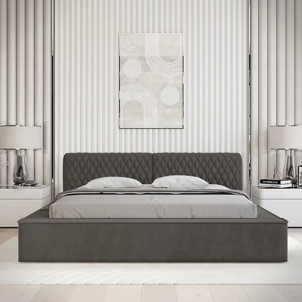 Lit coffre VERNON 140×200 cm en tissu chenille bouclé Anthracite profond – Élégance et confort premiumAjoutez une touche de caractère et de sophistication à votre chambre avec le lit coffre VERNON habillé d’un tissu chenille bouclé Anthracite profond haut de gamme. Son coloris intense et sa texture raffinée apportent une ambiance moderne et chaleureuse.Ce lit coffre allie des matériaux nobles — bois massif, métal renforcé, mousse haute densité — pour une robustesse et un confort exceptionnels. Son sommier relevable équipé de lattes en bois massif sur cadre métallique avec vérins à gaz permet un accès facile à un coffre spacieux, parfait pour optimiser votre rangement.Pourquoi choisir le lit coffre VERNON 140×200 ?Avec ses dimensions hors-tout de 238 x 180 x 86 cm, ce lit design combine luxe, confort et praticité. Le tissu chenille bouclé premium assure durabilité et sensation de confort supérieure au quotidien.Caractéristiques techniques premium Type : Lit coffre tapissé avec sommier relevable Collection : VERNON Dimensions couchage : 140×200 cm Dimensions hors-tout : L238 x l180 x H86 cm Structure : Bois massif, métal renforcé, mousse haute densité, panneaux de particules premium Revêtement : Tissu chenille bouclé premium – Coloris Anthracite profond Sommier : Lattes bois massif sur cadre métallique avec vérins à gaz haut de gamme Coffre : Grand espace de rangement sécurisé et facile d’accès Pieds : Plastique robuste et discret Nombre de colis : 4 (115 kg)Avantages exclusifs du lit coffre VERNON Design soigné avec finitions haut de gamme Matériaux nobles garantissant durabilité et confort exceptionnel Grand coffre pour un rangement pratique et optimisé Montage facile et rapide (environ 1h40)Découvrez la collection VERNON et explorez notre catégorie Lit pour sublimer votre chambre avec un mobilier haut de gamme.