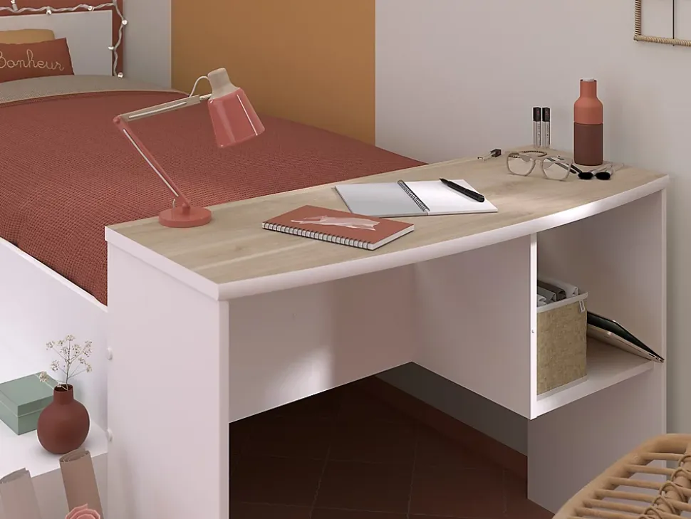 - Bureau intégré, Multiples rangements, Sens réversible au moment du montage