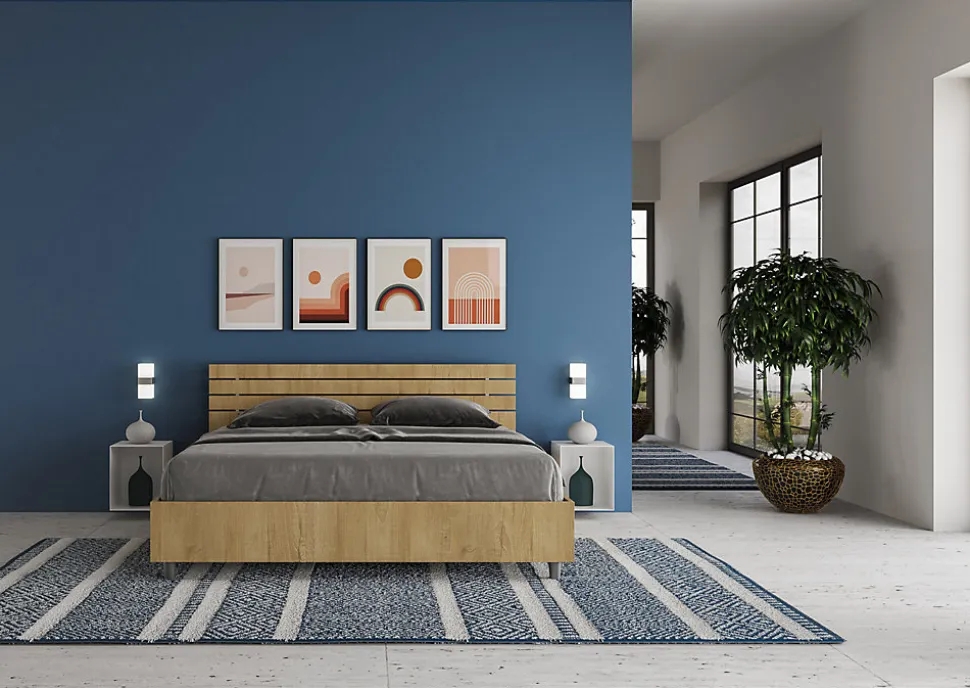 Lit double Ankel 160×200 avec tête de lit et panneau mélaminé, particulièrement polyvalent et s’harmonisant facilement avec tous les styles d’ameublement.Le lit double Ankel 160×200 arbore un style minimaliste et essentiel grâce à ses surfaces simples et linéaires.L’association du style et du matériau du cadre confère à la pièce une atmosphère chaleureuse et accueillante, typique du bois.Le lit est livré avec un sommier coffre, conçu pour un matelas 160×200 cm (matelas non inclus)