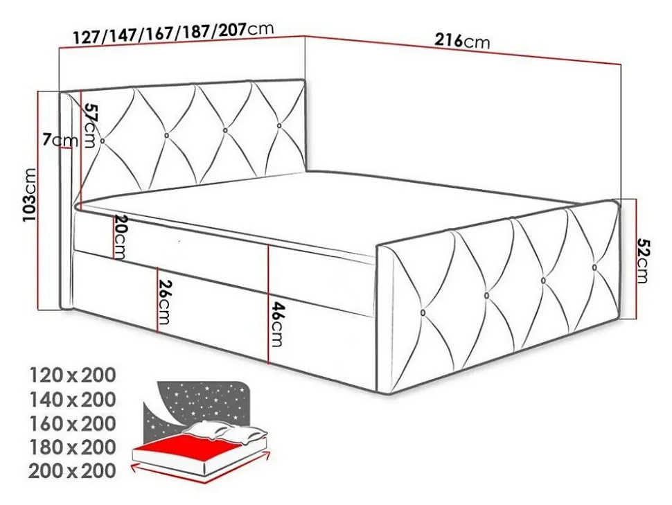 Lit continental Baltimore 150 (Mono 242) Caractéristiques: Largeur: 167 cm; Origine: Union européenne; Sommier à lattes: Disponible; Matelas: Disponible; Boîte de literie: Disponible; Taille du matelas: 1600 x 2000 cm; Hauteur: 103 cm; Longueur: 216 cm; Poids: 117 kg; Matériau: Tissu; Pieds: Absent; Type de matelas: Avec ressorts (Bonnell); Fermeté du matelas: Moyen; Hauteur de la zone de couchage: 46 cm; Matériau du cadre: Stratifié; Caractéristiques du matelas: Mousse polyuréthane t30; Surmatelas: Disponible; Hauteur du matelas: 20 cm; Épaisseur du surmatelas: 1.5 cm; Caractéristiques du surmatelas: Mousse de polyuréthane; Caractéristiques du surmatelas: Lavable; Caractéristiques du surmatelas: À deux côtés; Caractéristiques du surmatelas: Antiallergique; Caractéristiques du surmatelas: Antifongique; Caractéristiques du surmatelas: Respirant; Résistance: 50000 Cycles Martindale; Tête de lit: Disponible; Mécanisme de levage: Ressort; Code produit: 314793