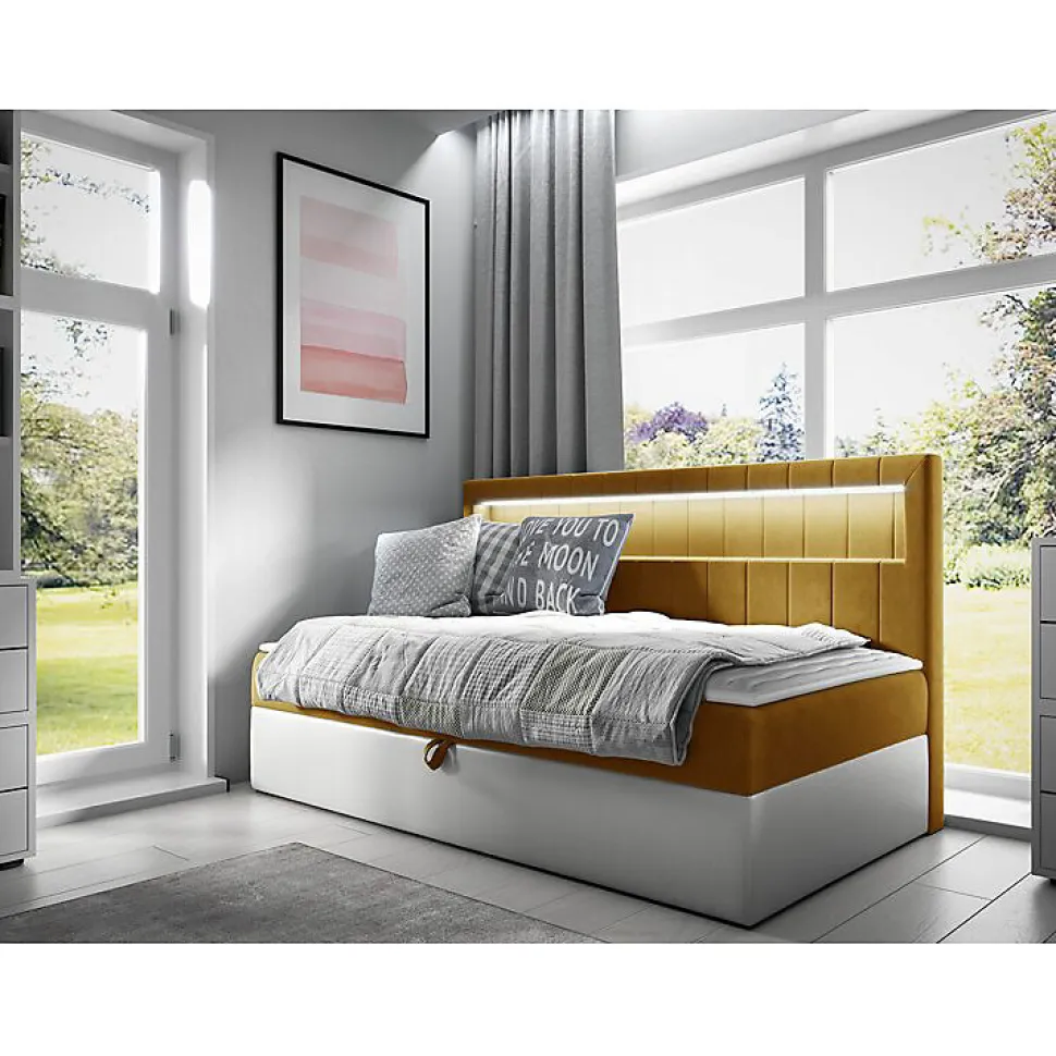 Lit continental Baltimore 168 (Soft 017 + Fresh 37) Caractéristiques: Largeur: 92 cm; Origine: Union européenne; Sommier à lattes: Disponible; Matelas: Disponible; Boîte de literie: Disponible; Taille du matelas: 800 x 2000 cm; Hauteur: 104 cm; Longueur: 202 cm; Poids: 76 kg; Matériau: Faux cuir; Matériau: Tissu; Pieds: Plastique; Type de matelas: Avec ressorts (Bonnell); Fermeté du matelas: Moyen; Hauteur de la zone de couchage: 49.5 cm; LED: Disponible; Matériau du cadre: Stratifié; Matériau du cadre: Bois; Caractéristiques du matelas: Mousse polyuréthane t25; Surmatelas: Disponible; Hauteur du pied: 2 cm; Hauteur du matelas: 20 cm; Épaisseur du surmatelas: 1.5 cm; Caractéristiques du surmatelas: Lavable; Caractéristiques du surmatelas: À deux côtés; Caractéristiques du surmatelas: Antiallergique; Caractéristiques du surmatelas: Antifongique; Caractéristiques du surmatelas: Respirant; Type de materiau: Velours; Tête de lit: Disponible; Mécanisme de levage: Ressort; Dimensions de la boîte à literie: 25 x 197 x 77cm; Code produit: 470060
