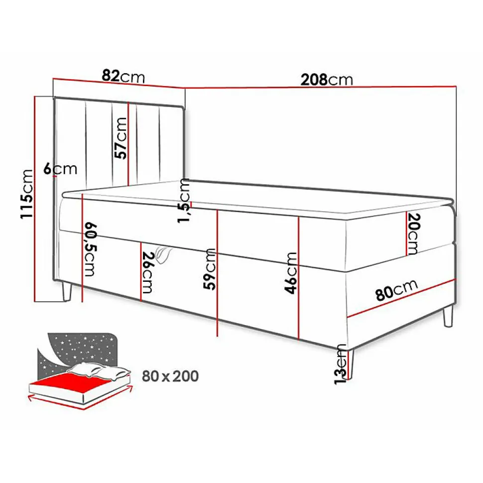 Lit continental Baltimore 170 (Soft 017 + Fresh 8) Caractéristiques: Largeur: 82 cm; Origine: Union européenne; Sommier à lattes: Disponible; Matelas: Disponible; Boîte de literie: Disponible; Taille du matelas: 800 x 2000 cm; Hauteur: 115 cm; Longueur: 208 cm; Poids: 61 kg; Matériau: Faux cuir; Matériau: Tissu; Pieds: Bois; Type de matelas: Avec ressorts (Bonnell); Fermeté du matelas: Moyen; Hauteur de la zone de couchage: 60.5 cm; Matériau du cadre: Stratifié; Matériau du cadre: Bois; Caractéristiques du matelas: Mousse polyuréthane t25; Surmatelas: Disponible; Hauteur du pied: 13 cm; Hauteur du matelas: 20 cm; Épaisseur du surmatelas: 1.5 cm; Caractéristiques du surmatelas: Lavable; Caractéristiques du surmatelas: À deux côtés; Caractéristiques du surmatelas: Antiallergique; Caractéristiques du surmatelas: Antifongique; Caractéristiques du surmatelas: Respirant; Type de materiau: Velours; Tête de lit: Disponible; Mécanisme de levage: Ressort; Meuble réversible: Oui; Dimensions de la boîte à literie: 25 x 197 x 77cm; Code produit: 470271