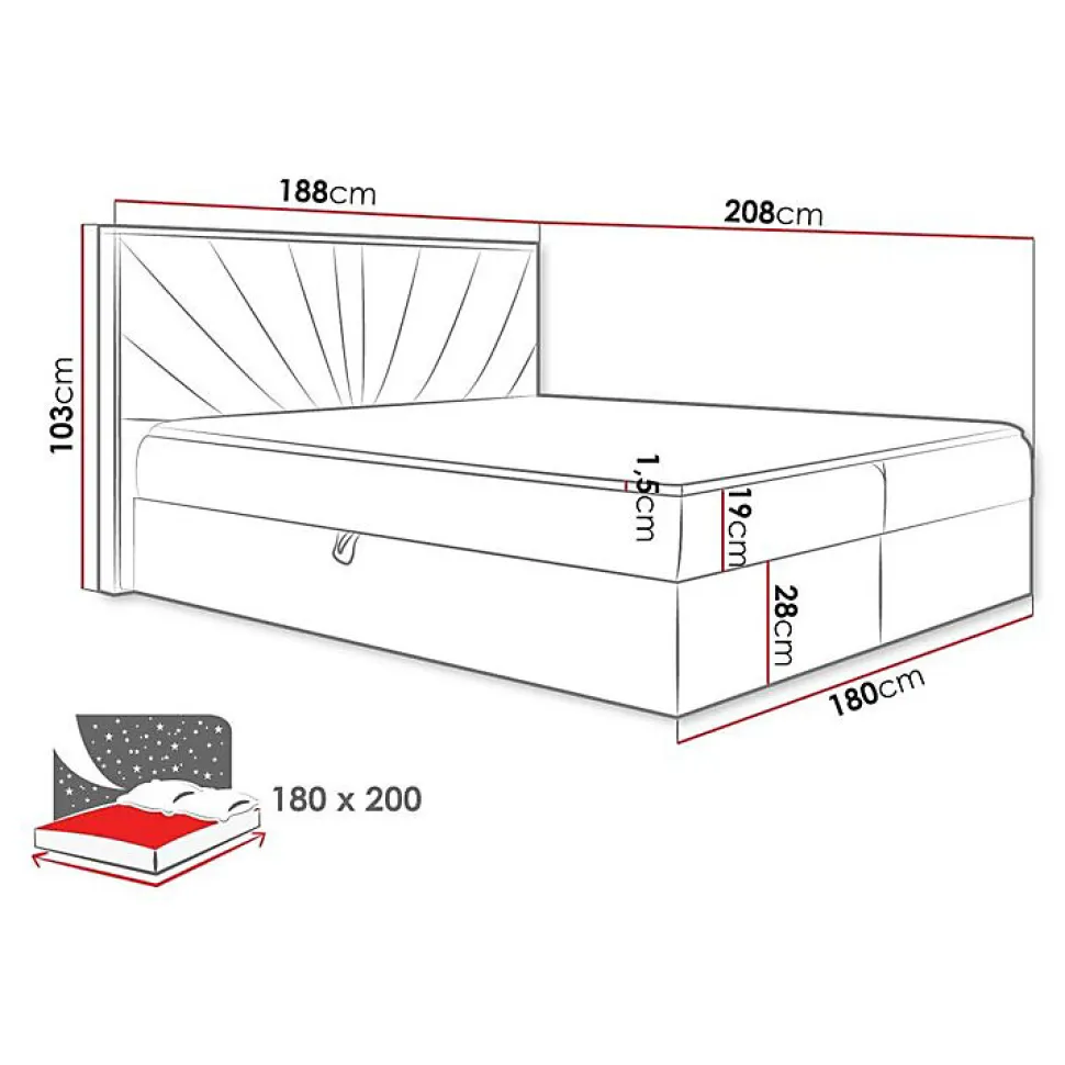 Lit continental Baltimore 191 (Faro 7) Caractéristiques: Largeur: 188 cm; Origine: Union européenne; Sommier à lattes: Disponible; Matelas: Disponible; Boîte de literie: Disponible; Taille du matelas: 1800 x 2000 cm; Hauteur: 103 cm; Longueur: 208 cm; Poids: 130 kg; Matériau: Tissu; Pieds: Absent; Type de matelas: Avec ressorts (Bonnell); Fermeté du matelas: Moyen; Hauteur de la zone de couchage: 48.5 cm; Matériau du cadre: Stratifié; Matériau du cadre: Bois; Caractéristiques du matelas: Mousse polyuréthane t25; Surmatelas: Disponible; Épaisseur du surmatelas: 1.5 cm; Caractéristiques du surmatelas: Mousse de polyuréthane; Caractéristiques du surmatelas: Lavable; Caractéristiques du surmatelas: À deux côtés; Caractéristiques du surmatelas: Antiallergique; Caractéristiques du surmatelas: Antifongique; Caractéristiques du surmatelas: Respirant; Tête de lit: Disponible; Mécanisme de levage: Ressort; Code produit: 495544