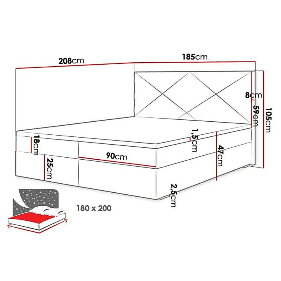 Lit continental Memphis 117 (Itaka 11) Caractéristiques: Largeur: 185 cm; Origine: Union européenne; Sommier à lattes: Disponible; Matelas: Disponible; Boîte de literie: Disponible; Taille du matelas: 1800 x 2000 cm; Hauteur: 105 cm; Longueur: 208 cm; Poids: 119 kg; Matériau: Tissu; Pieds: Plastique; Type de matelas: Avec ressorts (Bonnell); Fermeté du matelas: Moyen; Hauteur de la zone de couchage: 47 cm; Matériau du cadre: Stratifié; Caractéristiques du matelas: Mousse polyuréthane t30; Surmatelas: Disponible; Hauteur du pied: 2.5 cm; Hauteur du matelas: 18 cm; Épaisseur du surmatelas: 1.5 cm; Caractéristiques du surmatelas: Lavable; Caractéristiques du surmatelas: À deux côtés; Caractéristiques du surmatelas: Antiallergique; Caractéristiques du surmatelas: Antifongique; Résistance: 100000 Cycles Martindale; Type de materiau: Peluche; Matériel supplémentaire: Bois; Dimensions de la tête de lit: 105 x 185 x 8cm; Tête de lit: Disponible; Mécanisme de levage: Ressort; Dimensions de la boîte à literie: 25 x 195 x 85cm; Bois: Pin; Code produit: 475084