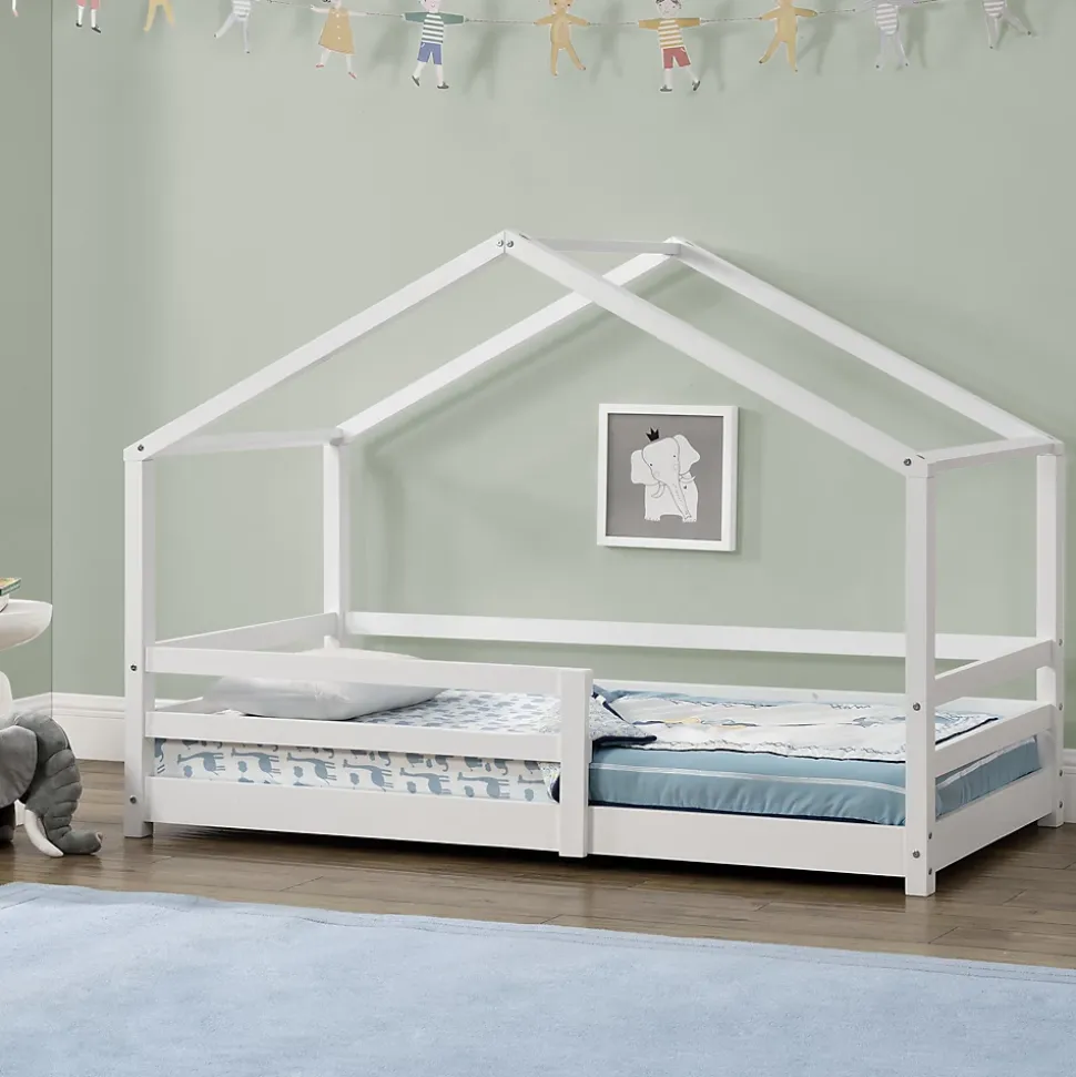 - Ce lit solide en pin est conçu aux enfants. Grâce au design maison, il peut être l’ornement de n’importe quelle chambre d’enfant. Pour assurer la sécurité de votre enfant, le matelas est encadré par des barreaux de protection.