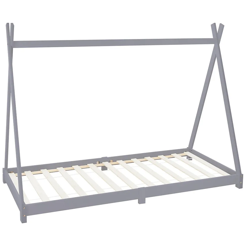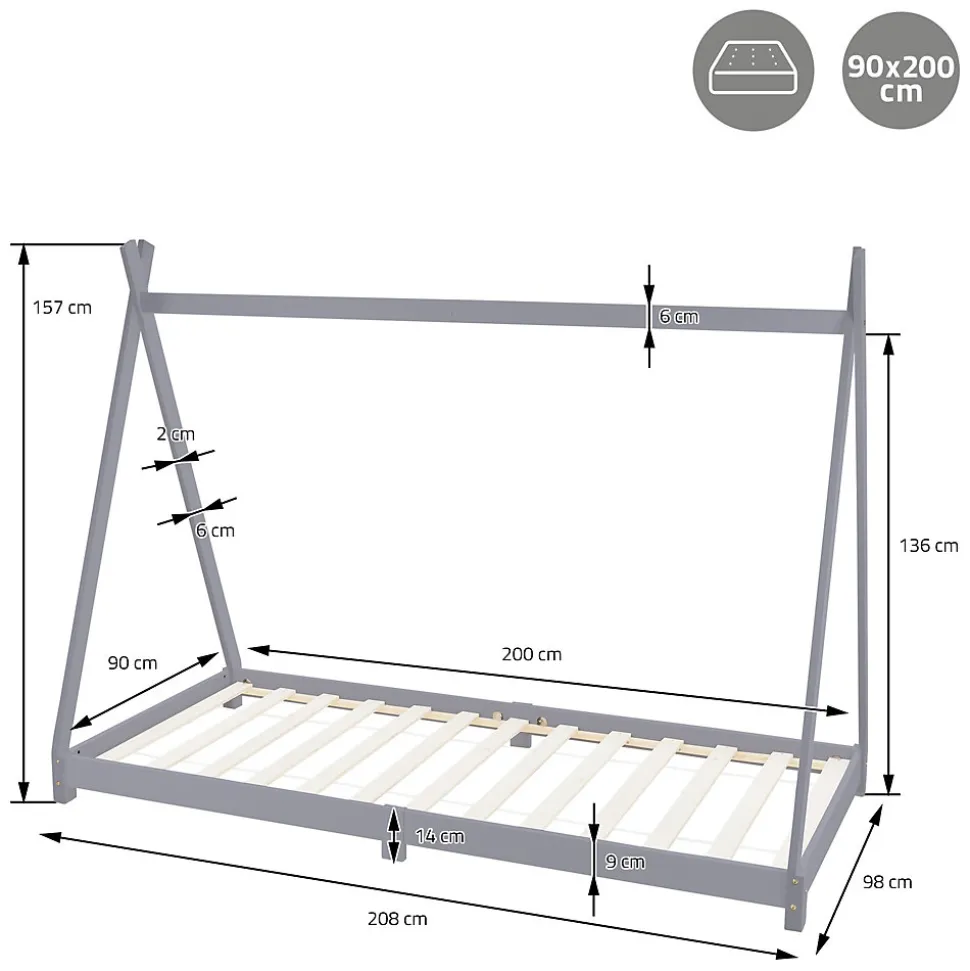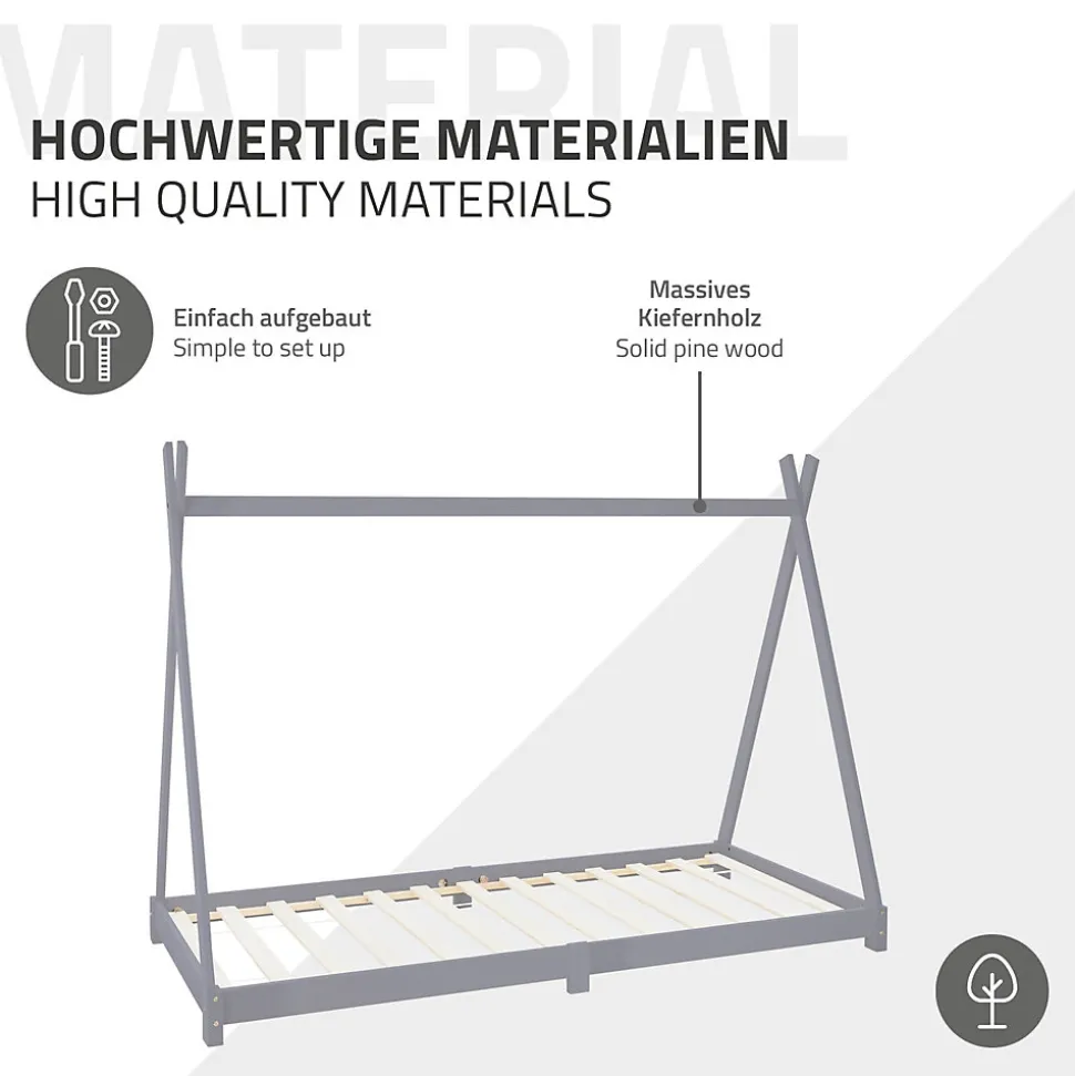 Lit d’enfant ML-Design Tipi 90×200 cm gris clair simple en bois de pin sommier à lattes style indien