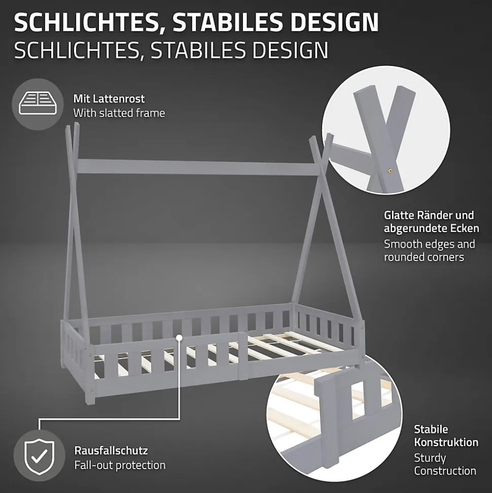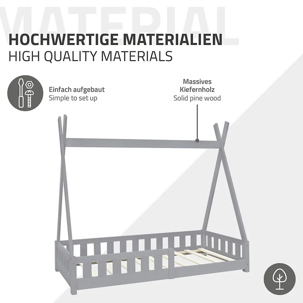 Lit d'enfants ML-Design Tipi 80x160 cm gris clair maison en bois de pin avec sommier clôture de jeu