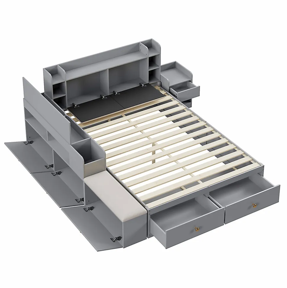 - 【Espace de rangement optimisé】 les tiroirs au pied du lit et les compartiments supplémentaires permettent de ranger vêtements, accessoires et objets quotidiens, réduisant le désordre et facilitant l’accès quotidien.