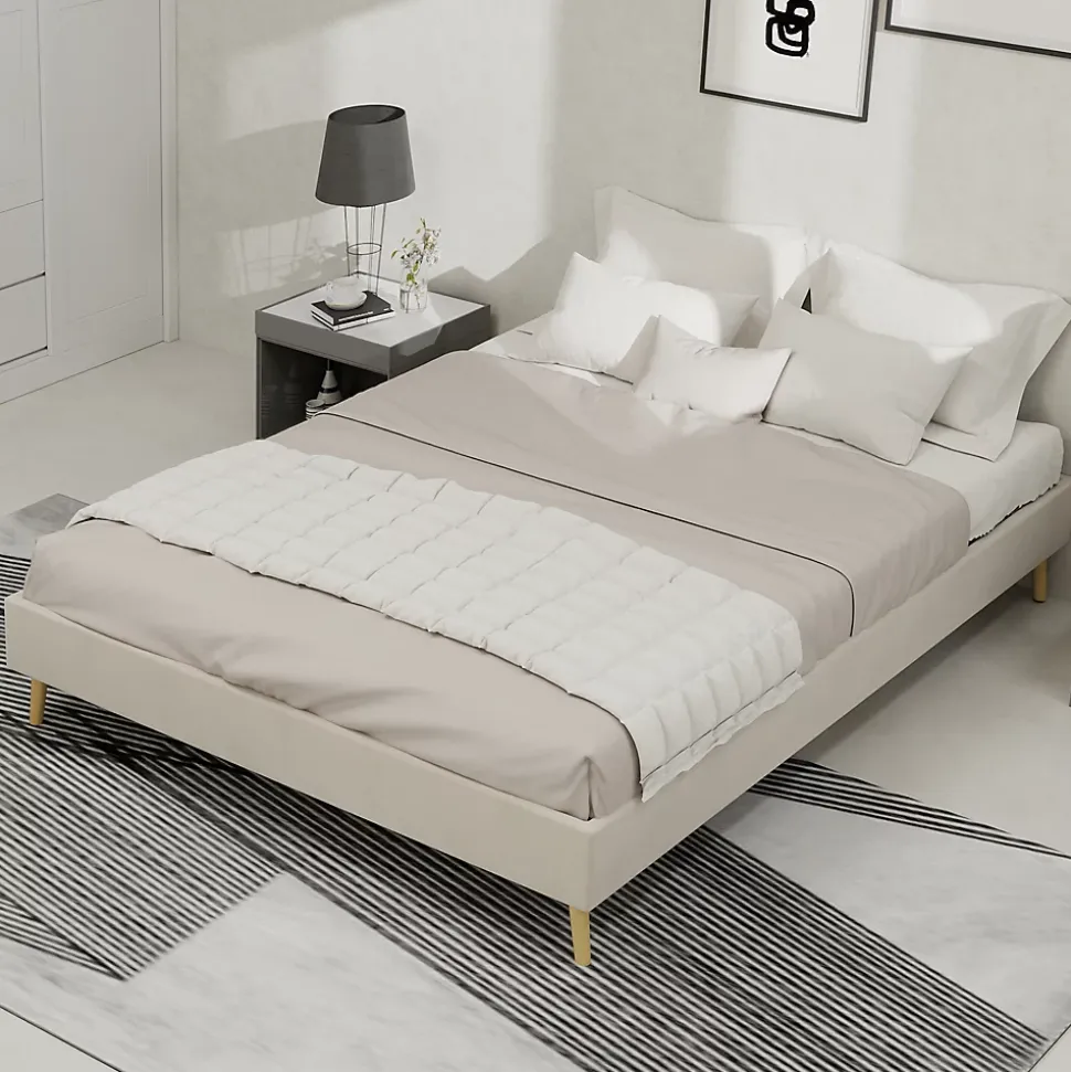 ▶ ▶ Détails ▶────────────────● Type de produit : Lit double● Dimensions du couchage : 140 × 200 cm● Couleur : Beige● Matériaux : Tissu (velours néerlandais), métal● Caractéristiques : Style moderne, base basse● Matelas et tête de lit inclus : Non● Dimensions totales du produit : 200 × 140 × 14 cm● Poids : 18 kg● Nombre de colis : 1● Montage requis : Oui● Pays d’origine : Chine► Remarques ►※ Le produit ne comprend pas les têtes de lit ni les matelas.※ Les photos du produit sont prises avec des produits réels, mais en raison de la lumière et d’autres facteurs, des variations de couleur peuvent se produire.※ Assurez-vous de mesurer l’espace avant l’achat.※ Si vous avez des questions pendant l’assemblage, n’hésitez pas à nous contacter.