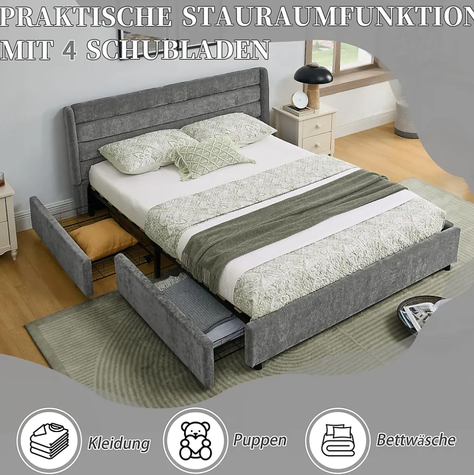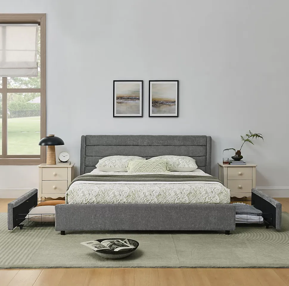 - 【Rangement optimisé】 Quatre tiroirs spacieux intégrés sous le lit permettent de stocker vêtements, literie et coussins, maximisant l’espace disponible et maintenant la chambre organisée, parfaite pour les appartements ou chambres d’adolescents.