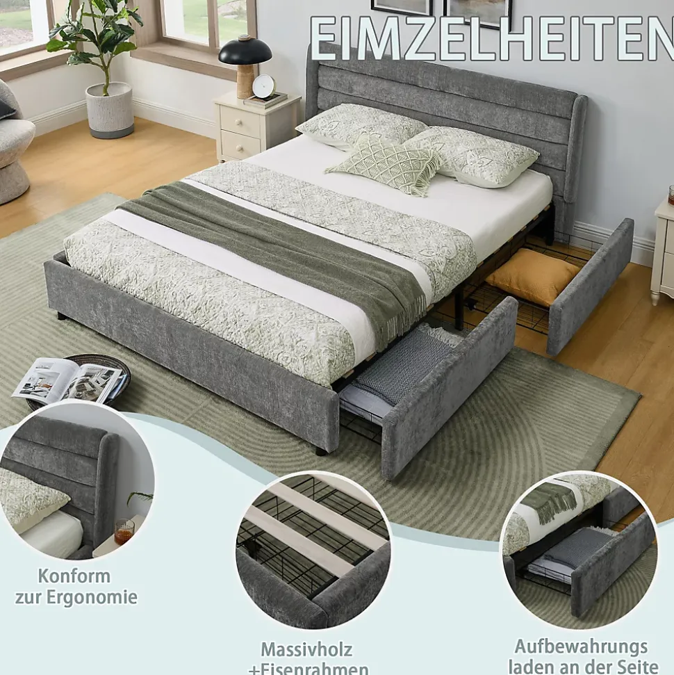 - 【Optimisation de l’espace】 Le lit intègre un design compact avec tiroirs sous la structure, permettant de libérer de l’espace au sol, idéal pour les petites chambres, appartements ou pièces multifonctions tout en offrant un couchage spacieux et confortable.