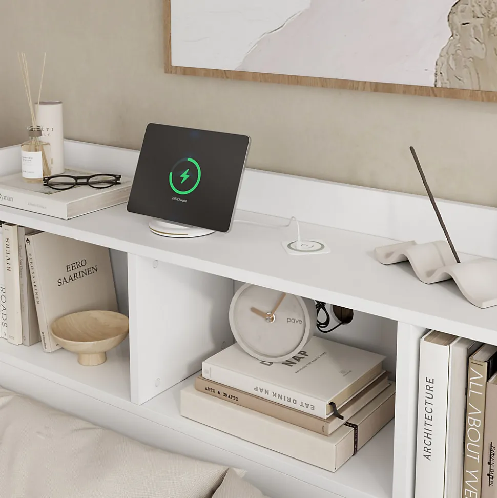 Lit polyvalent offrant un espace de rangement optimisé et un confort maximal. Le dessous du lit est équipé de quatre tiroirs spacieux et d’une table de chevet push-pull, permettant de ranger facilement vos objets du quotidien tout en économisant de l’espace, idéal pour les petits appartements. La table de chevet dispose d’une étagère pratique pour livres, lunettes, réveil ou autres objets utiles, facilitant la lecture ou les moments de détente avant le coucher. Grâce au système de charge double avec port Type-C intégré et fonction de charge sans fil, plusieurs appareils peuvent être chargés simultanément de manière intelligente et pratique, sans encombrement de câbles. Avec ses dimensions standard de 140 × 200 cm, ce lit offre suffisamment d’espace pour un usage individuel confortable ou un couchage à deux, répondant ainsi à divers besoins. Son style blanc simple et polyvalent, avec une structure en bois élégante, s’intègre harmonieusement à différents décors de chambre tout en apportant luminosité et esthétique à l’espace.