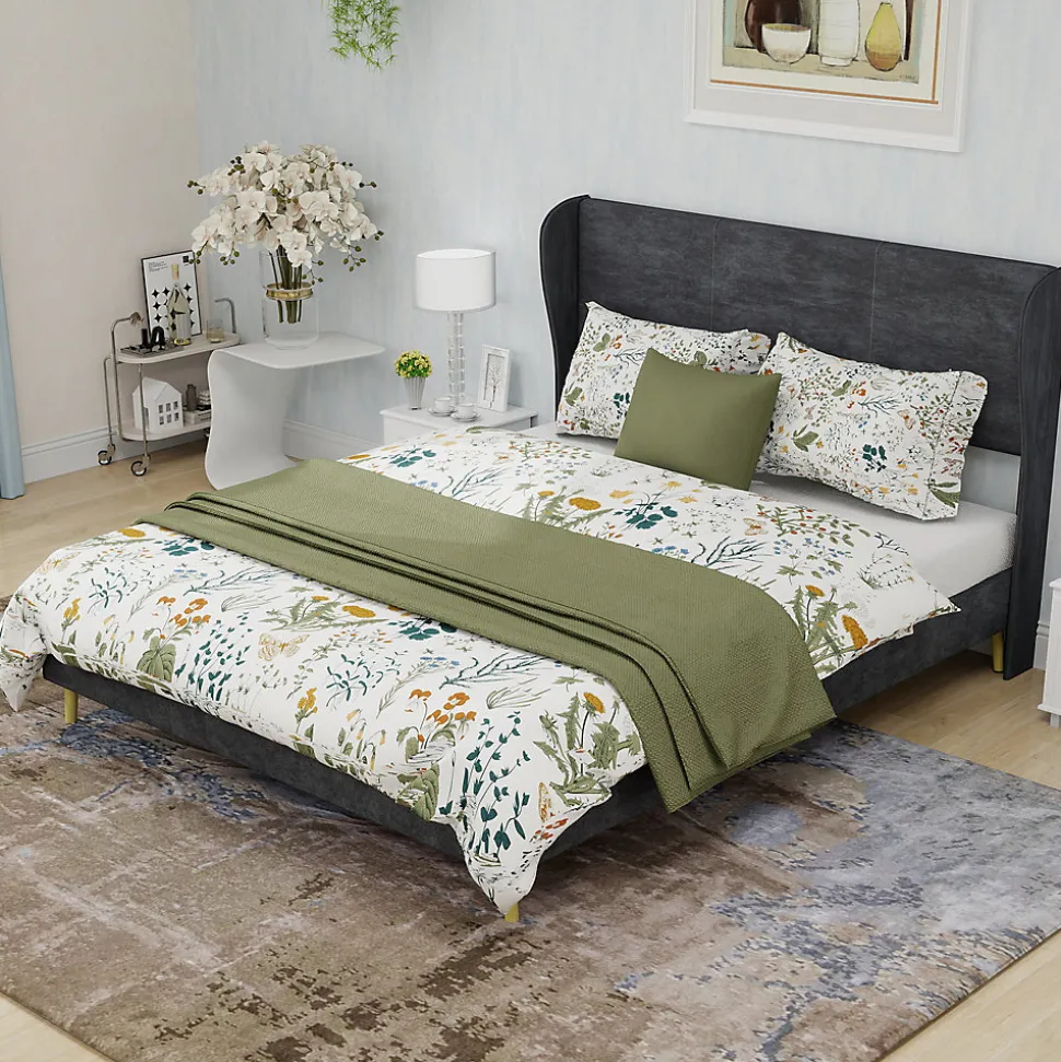 - 【Matériaux durables】 Fabriqué en panneaux de bois et bois de caoutchouc de qualité, ce lit assure une stabilité durable et un soutien fiable, permettant un sommeil confortable sans nécessiter de sommier supplémentaire.