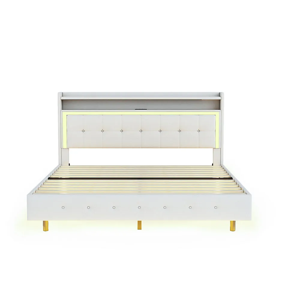 - 【Multifonctionnel Tête de Lit】Le tête de lit rembourré intègre une prise USB et des LED pour recharger vos appareils et éclairer la chambre la nuit, tout en offrant un espace de rangement pratique pour garder vos essentiels à portée de main.